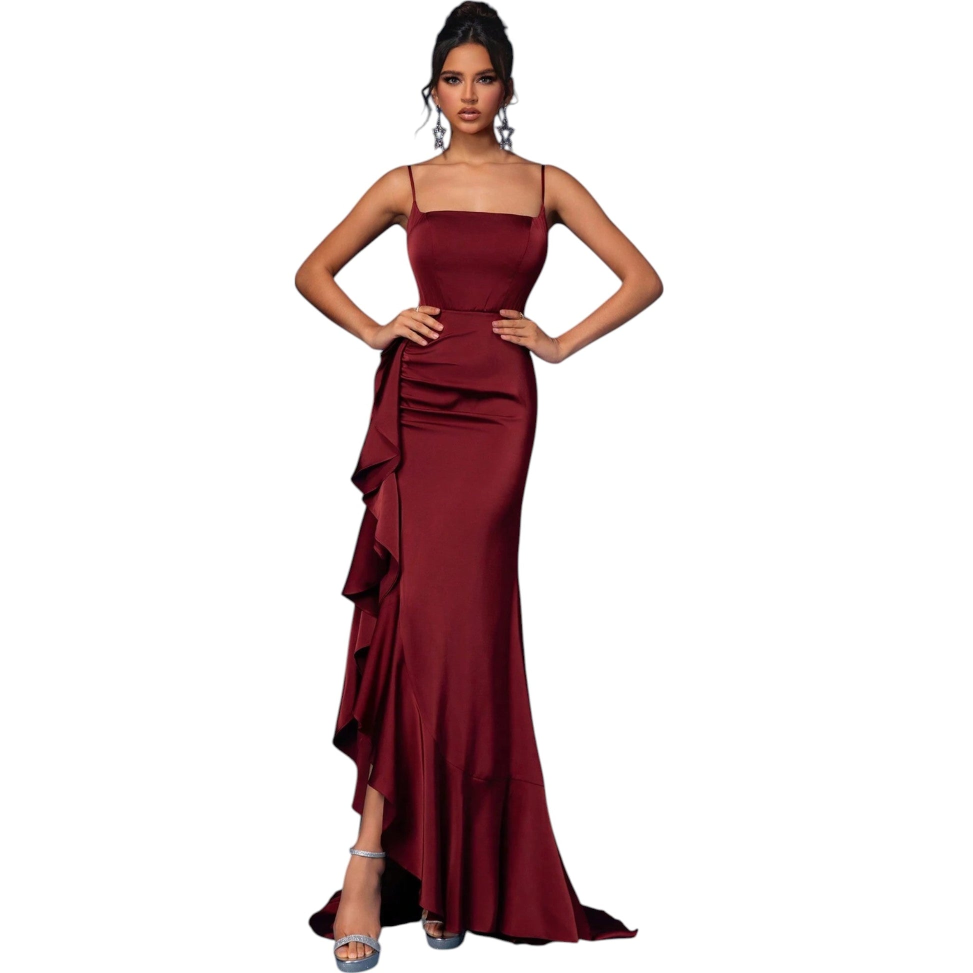 SHE bordó spagetti pántos estélyi ruha