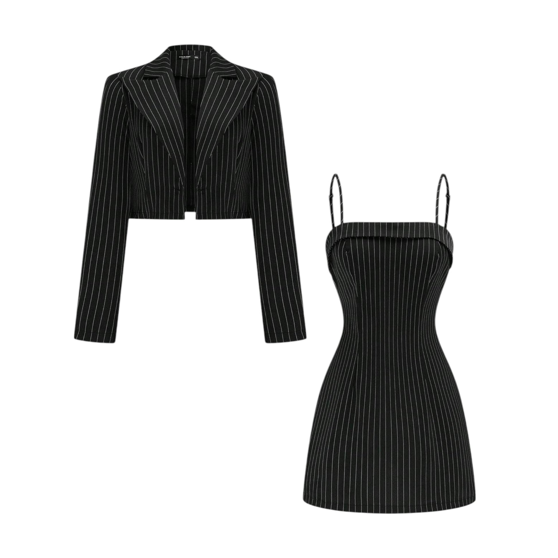 Címke nélküli, fekete, fehér csíkos, spagetti pántos mini ruhá.