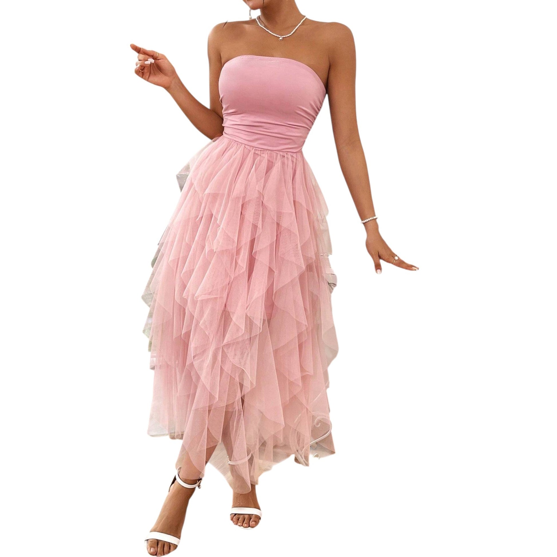 SHE rózsaszín pánt nélküli tüll midi ruha