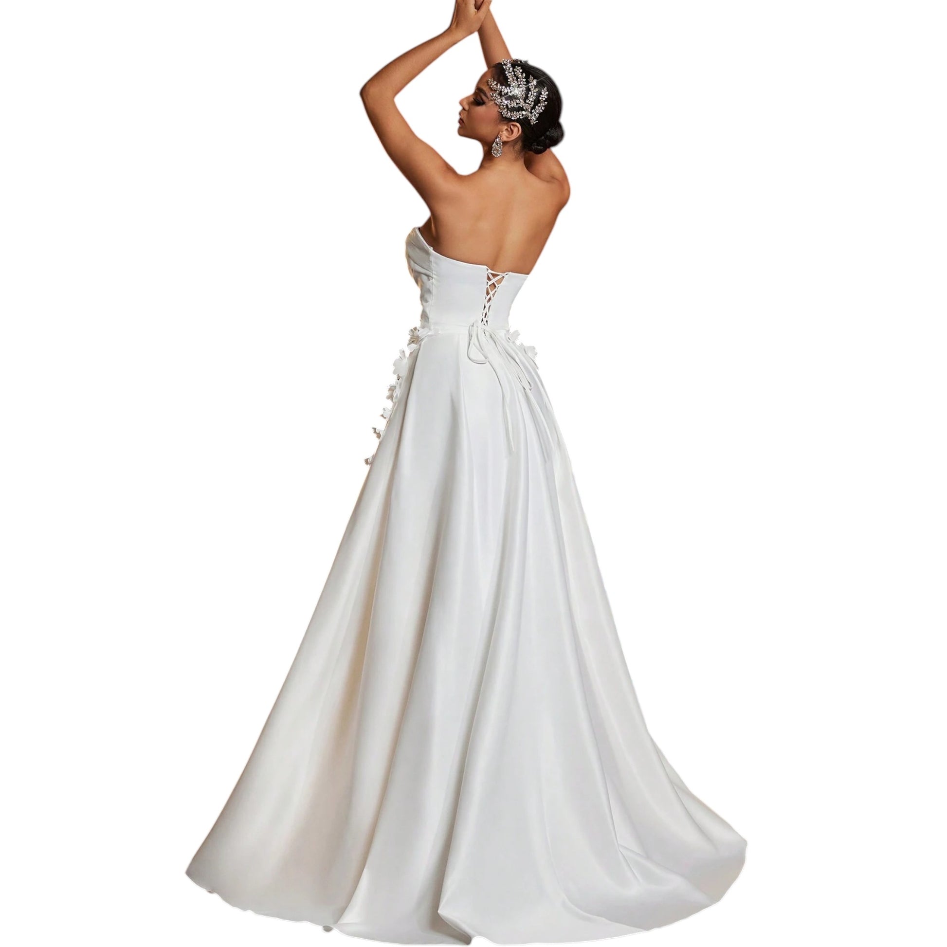 Címke nélküli, ekrü, pánt nélküli, strasszos, maxi ruha, uszályos.