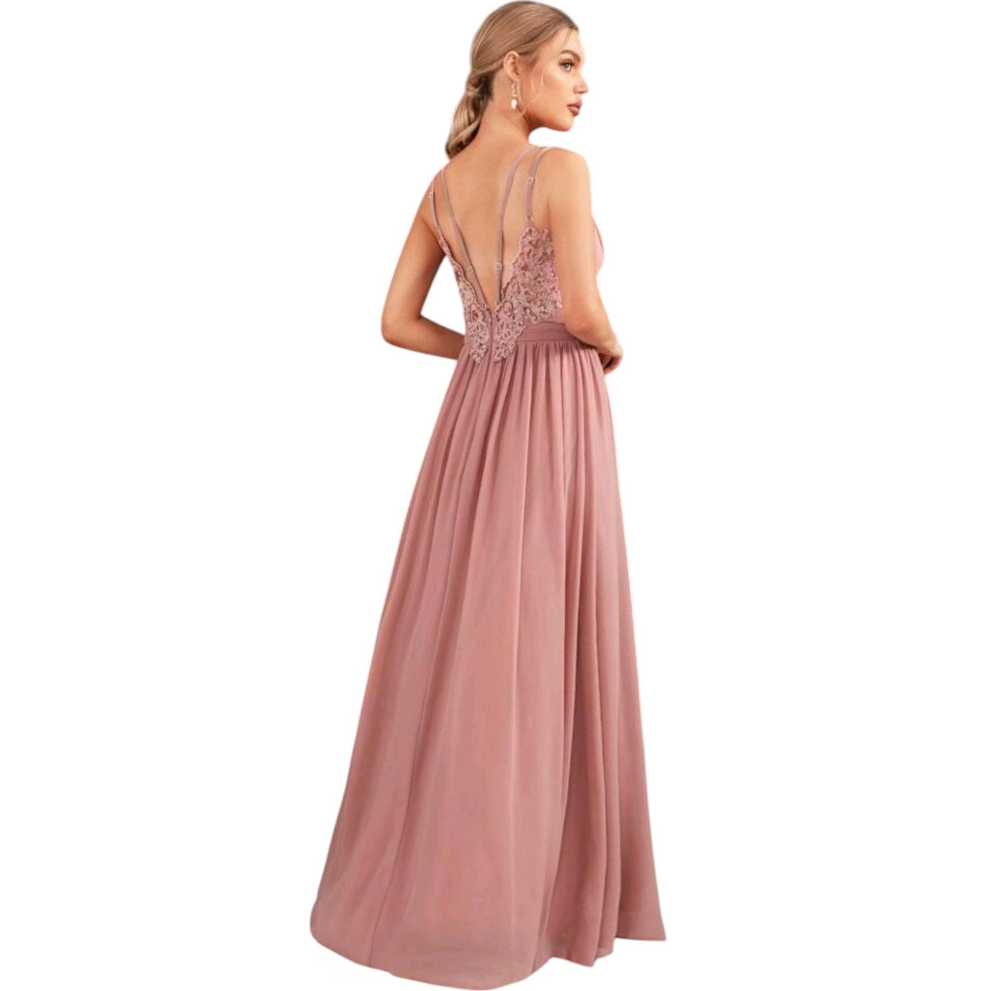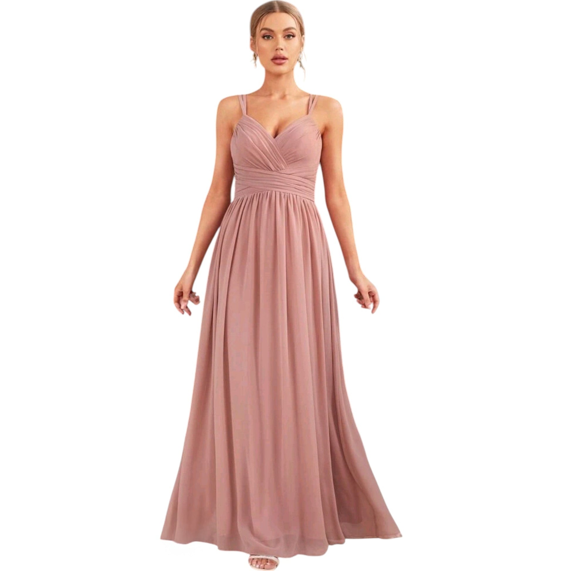SHE rózsaszín pántos hosszú alkalmi ruha