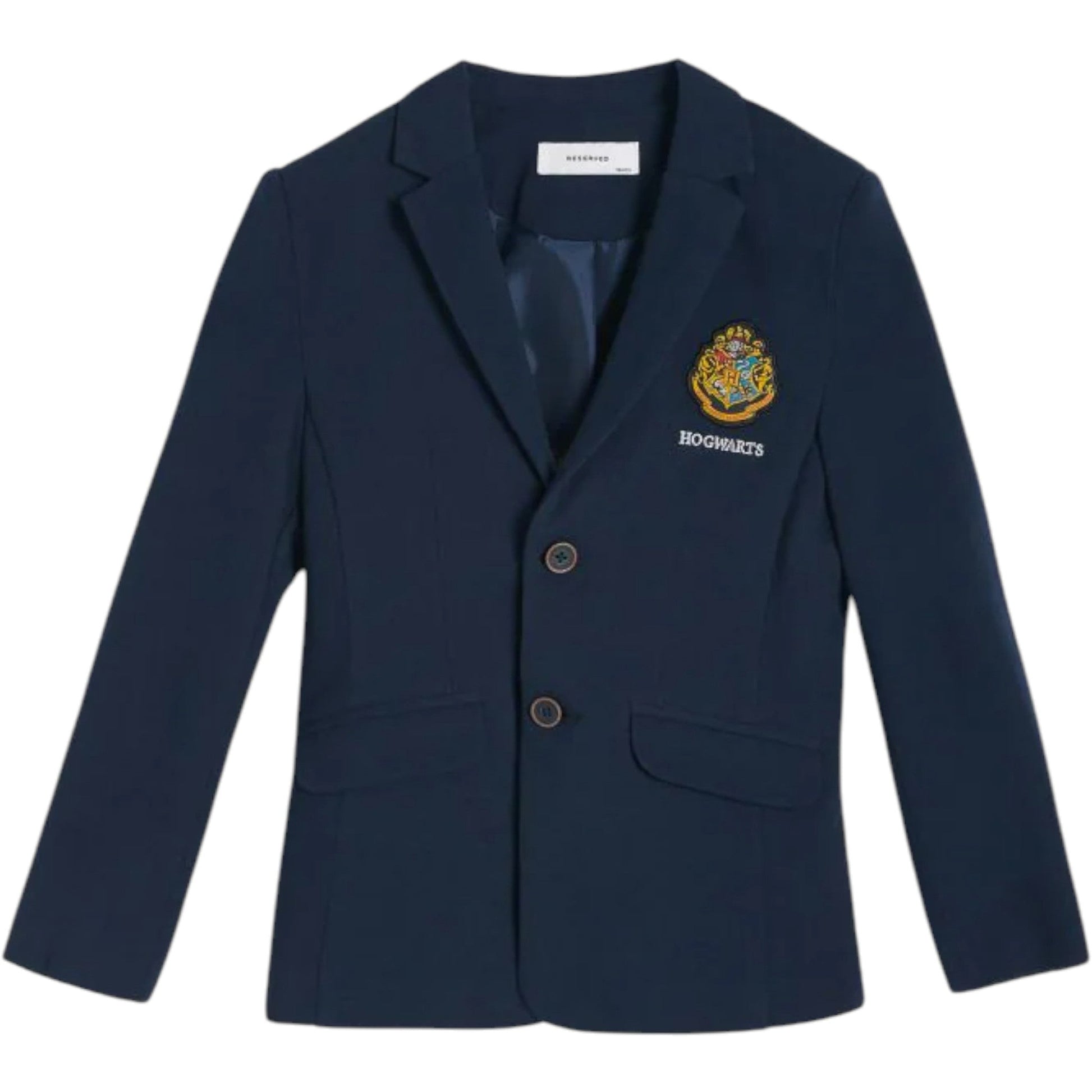 Címke nélküli, sötétkék, hosszú ujjú blézer. Két gombos záródás. Bal oldalon felvarrt hímzett logóval és HOGWARTS felirattal.