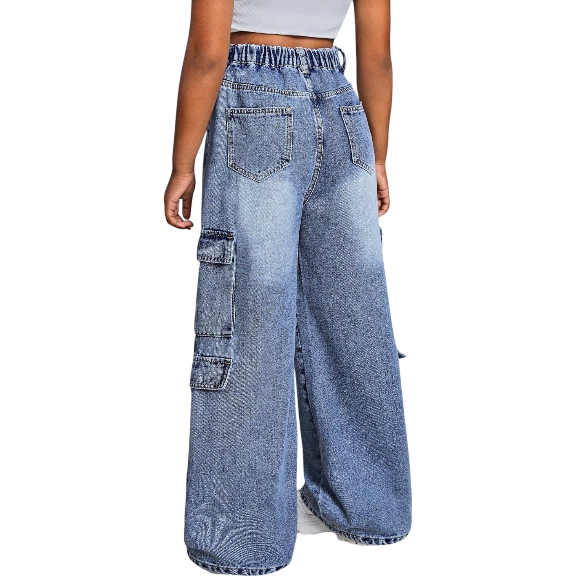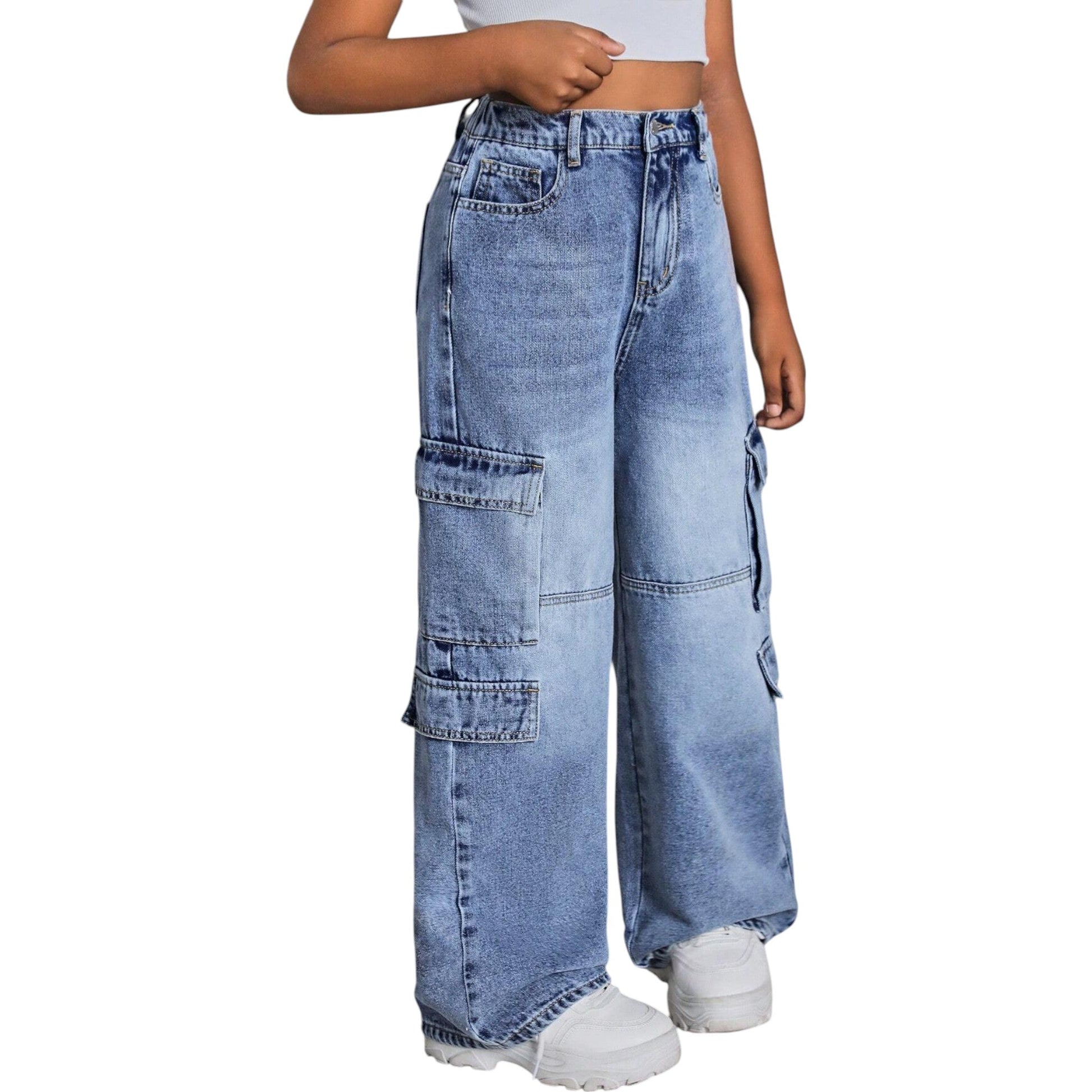Címke nélküli, kék, bő szárú, cargo zsebekkel.