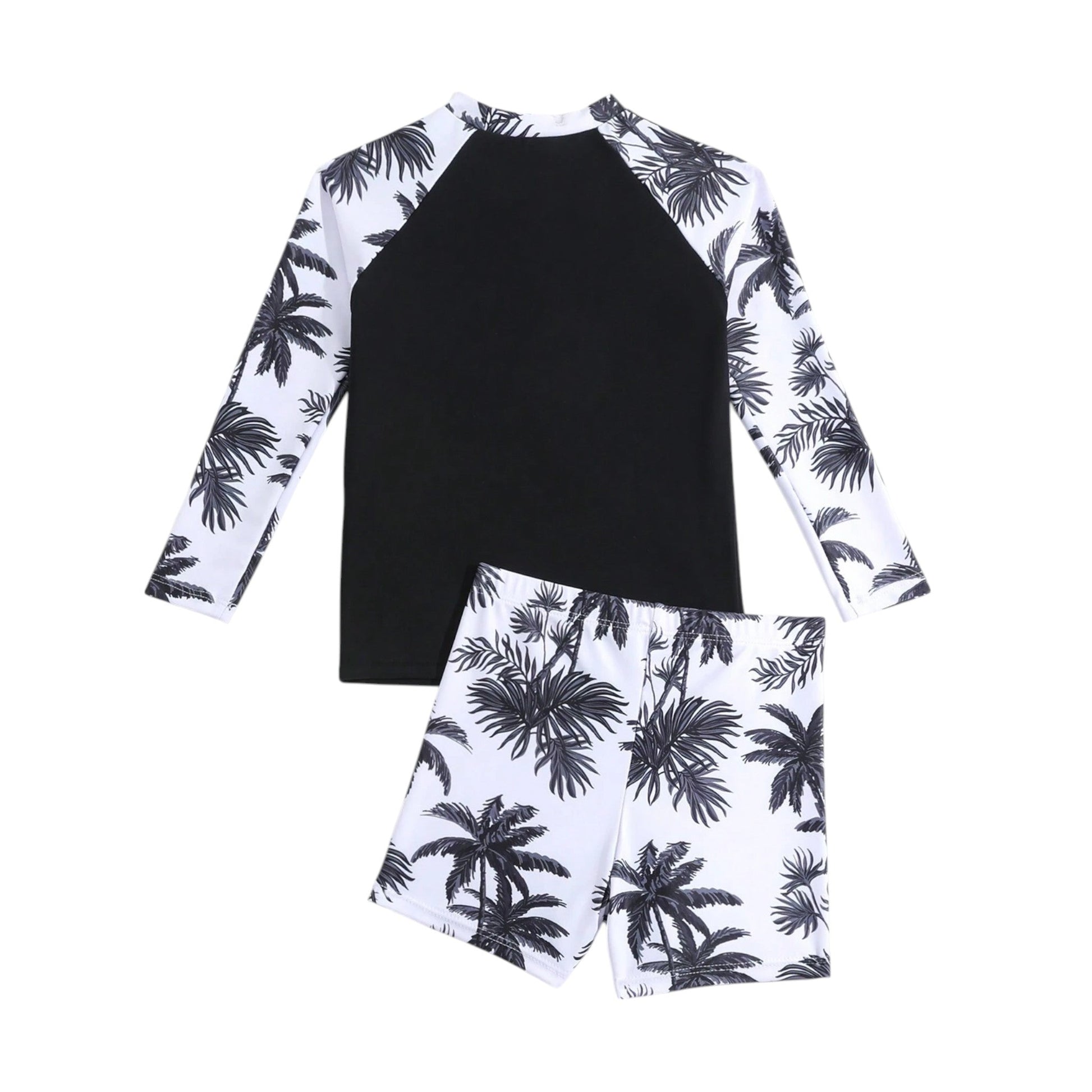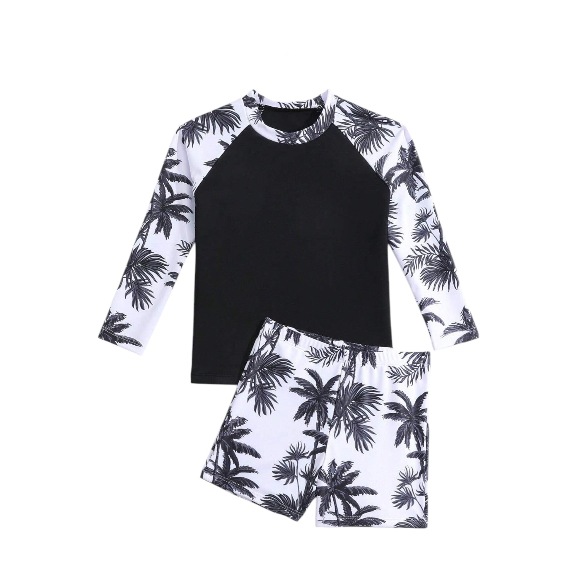 SHE fekete-fehér pálma mintás fürdőruha szett