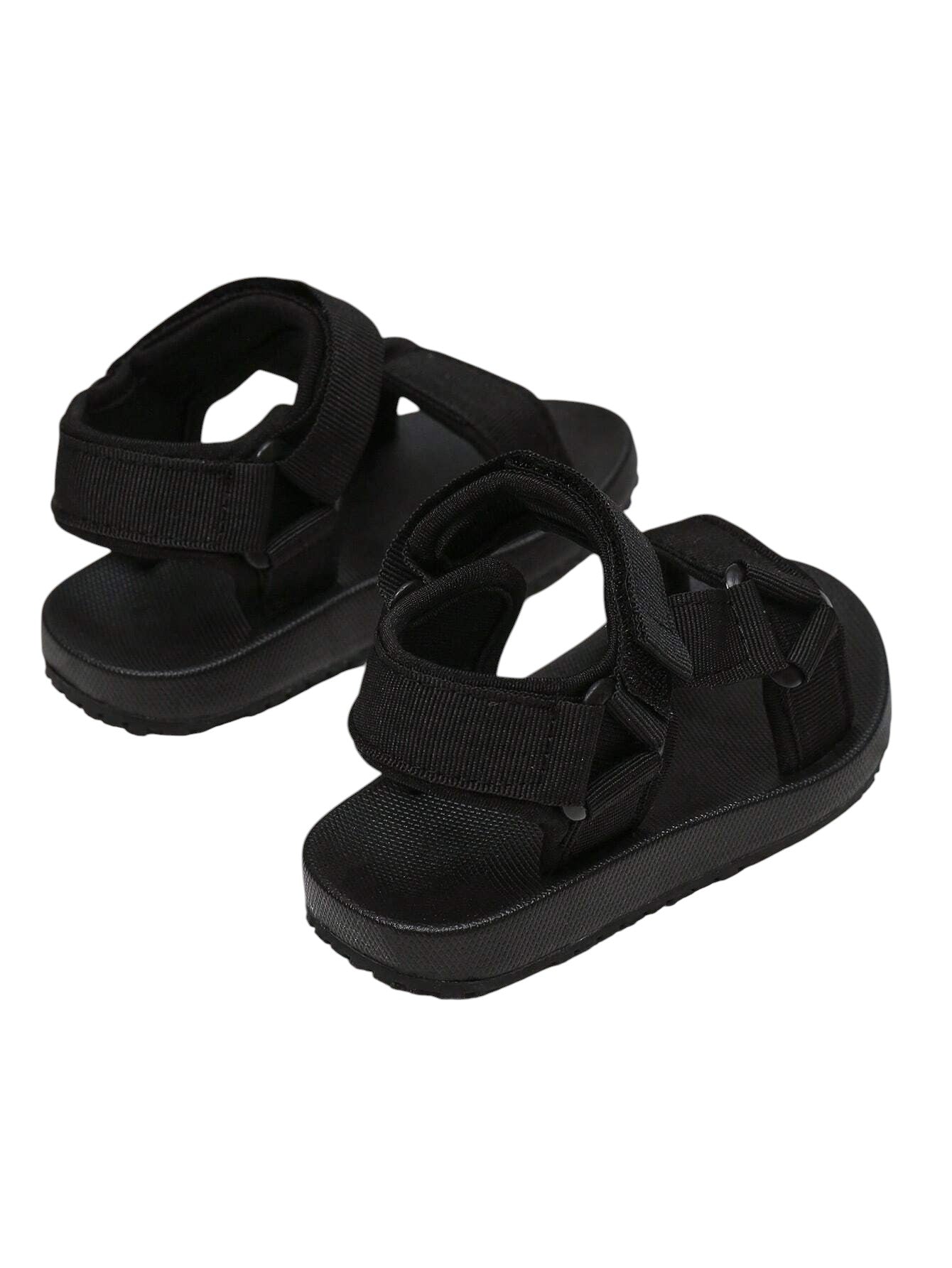 Címke nélküli, fekete, állítható tépőzáras pántokkal rendelkező szandál