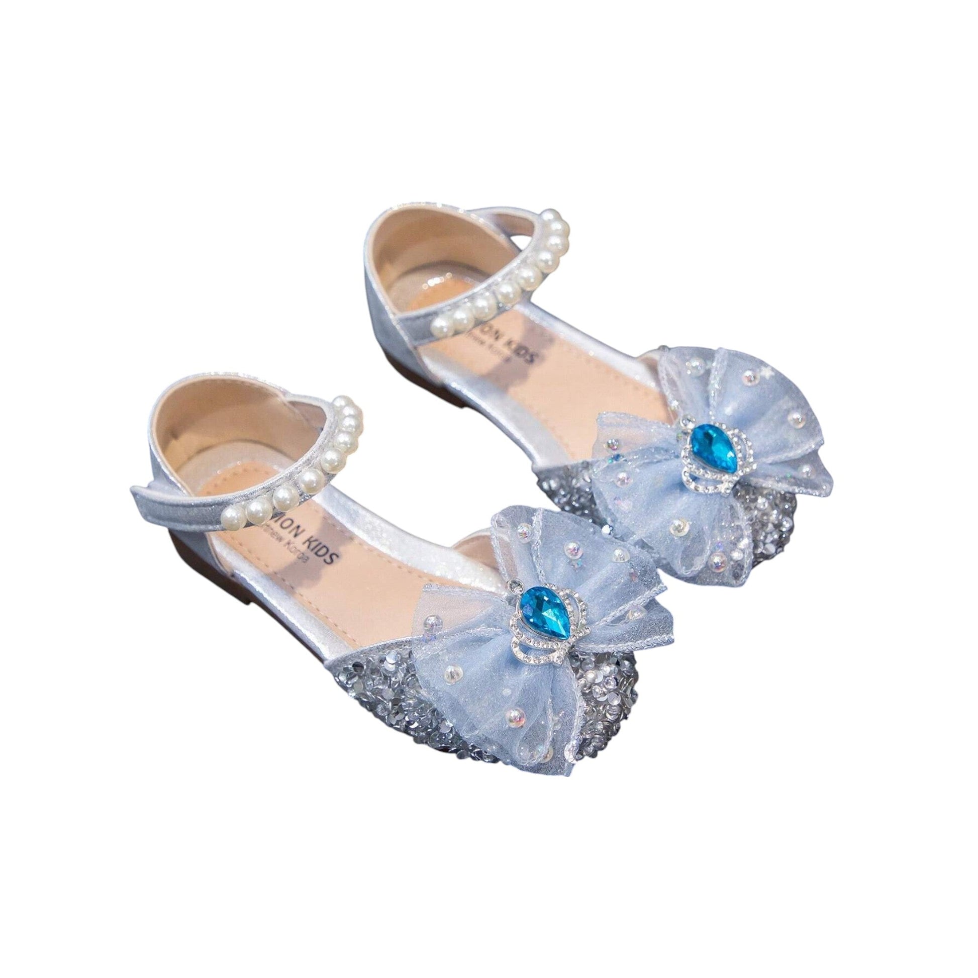 Címke nélküli, ezüst színű, bokapántos, gyöngyös díszítéssel, masnival és strasszkővel díszített alkalmi kislány szandál. Belső talp hossz: 14cm