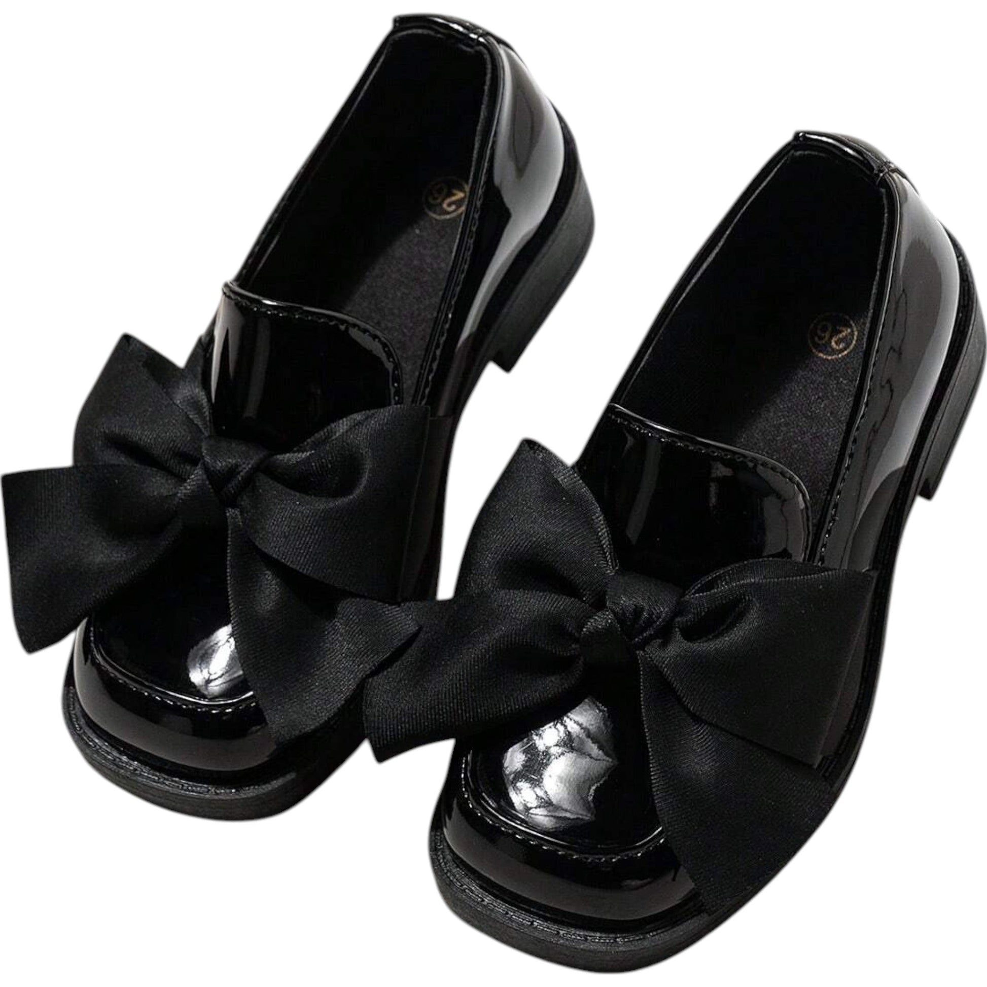 Címke nélküli, fekete lakkbőr cipő masnival. Belső talp hossz: 21,6cm