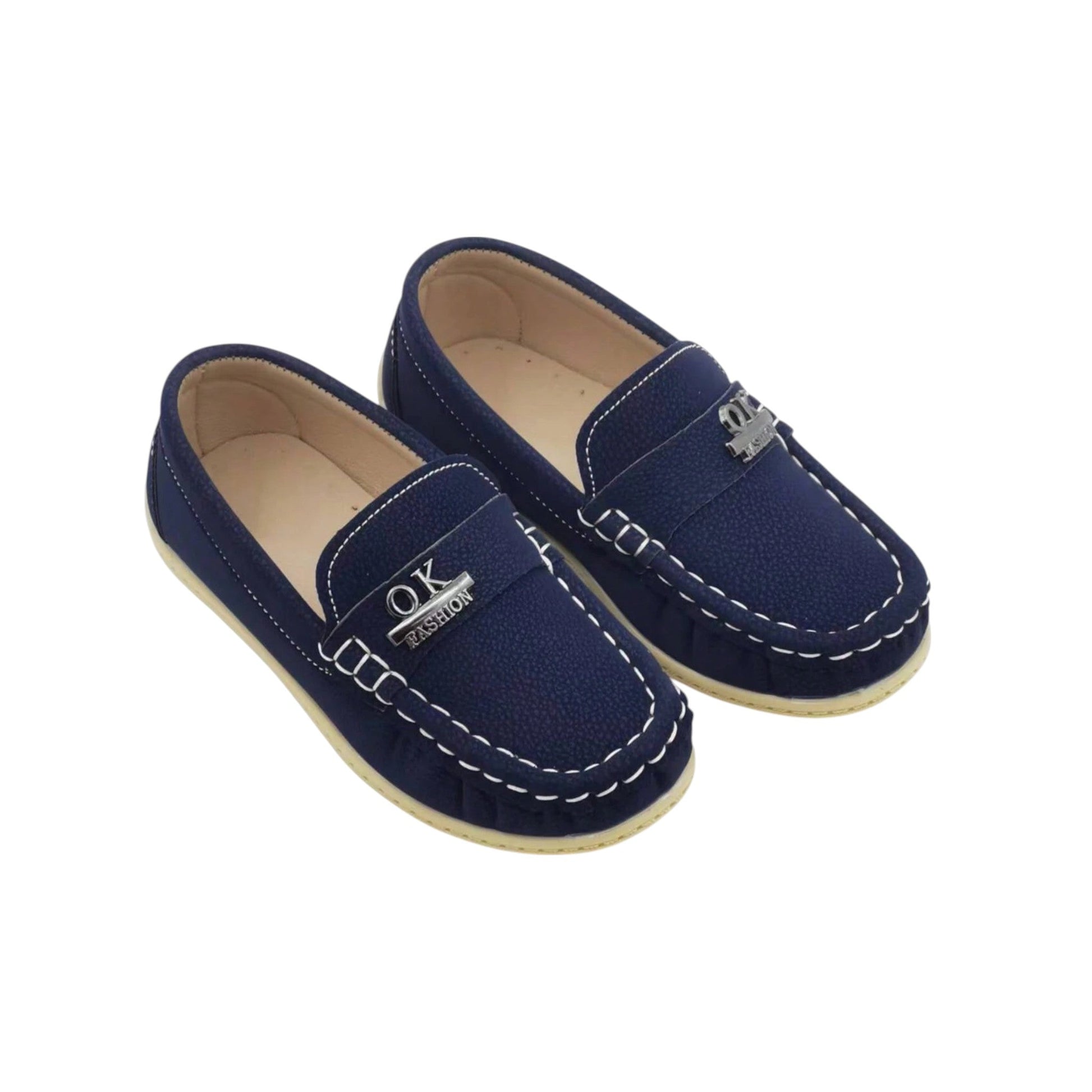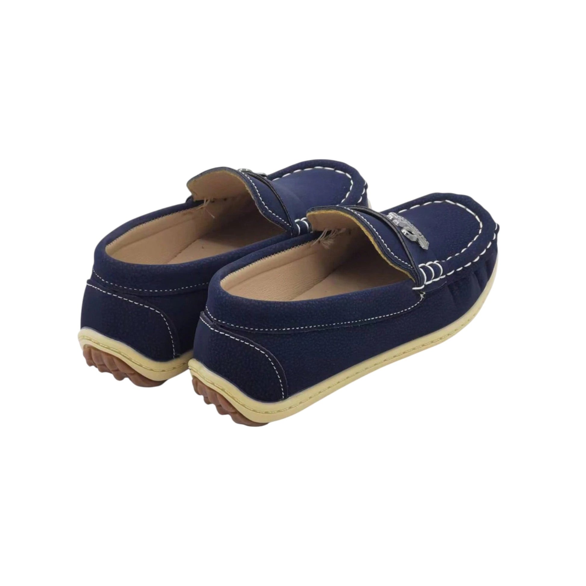 Címke nélküli, sötétkék, fehér varrással, fém díszítéssel. Belső talp hossz: 24cm