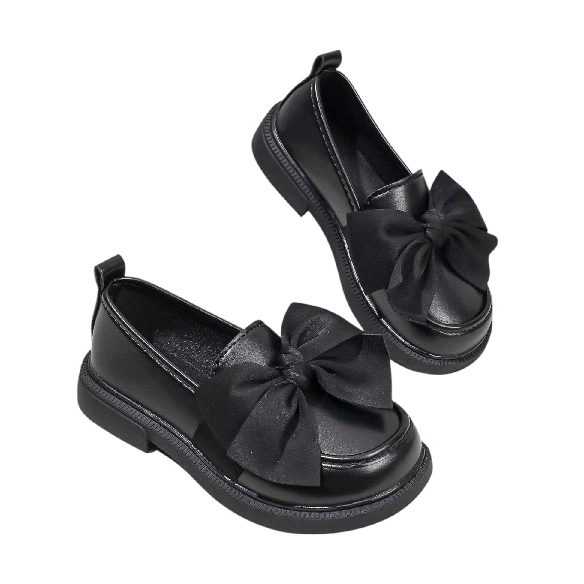Címke nélküli, fekete színű, kerek orrú, platform talpú cipő, fekete masnival díszítve. Belső talp hossz: 19cm