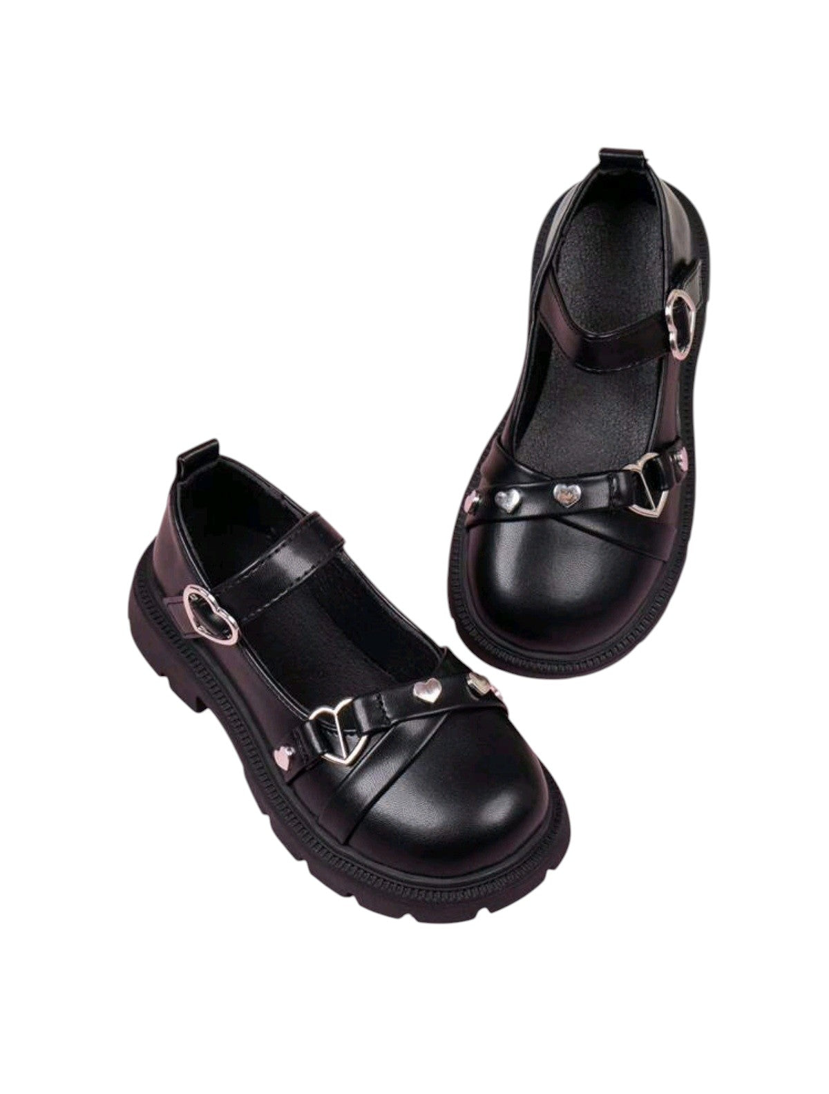 SHE fekete szívecskés csatos platform Mary Jane cipő