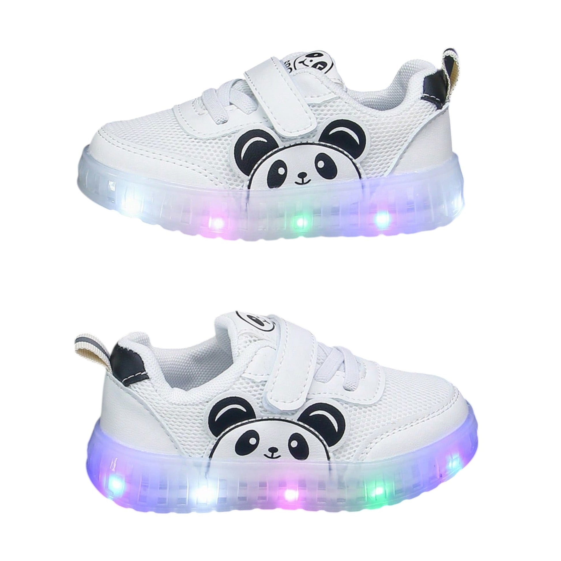 Címke nélküli, fehér, világító talpú, tépőzáras, panda mintás, sportos.