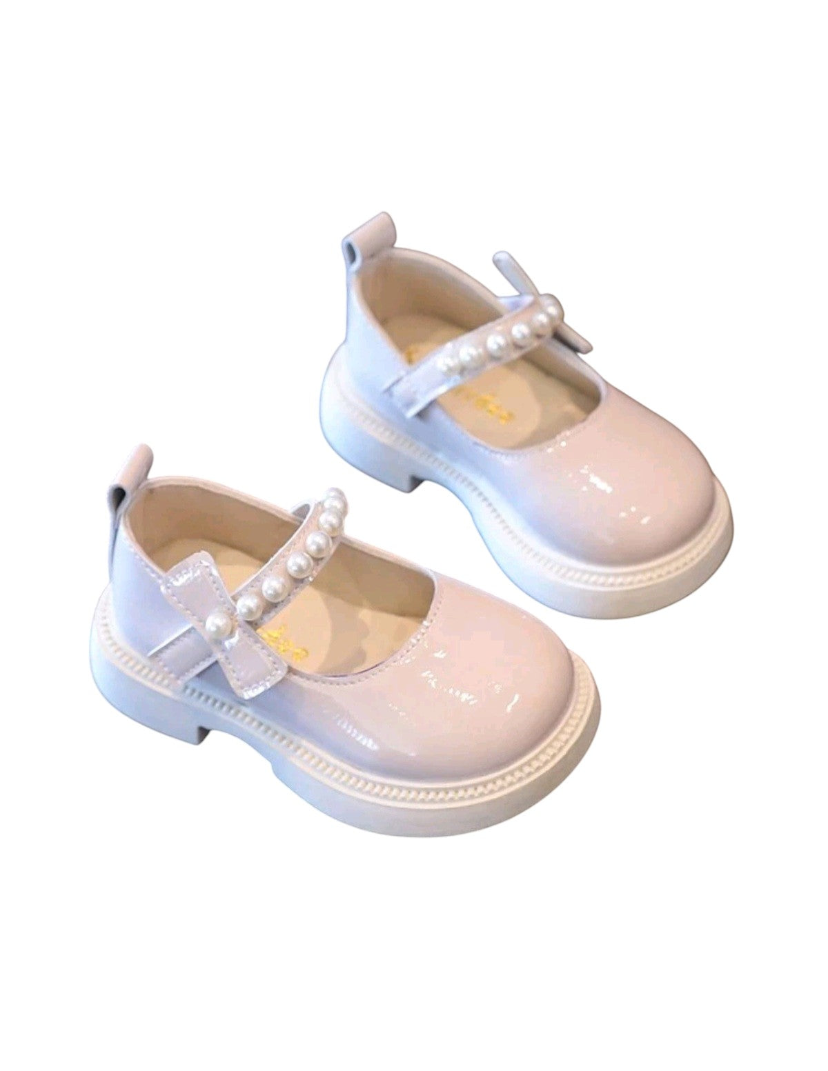 Címke nélküli, rózsaszín, lakkbőr hatású szintetikus, Mary Jane fazon, kerek orr, gyöngyös pánt a lábfejen, fehér vastagabb talp. Belső talp hossz: 17,3cm