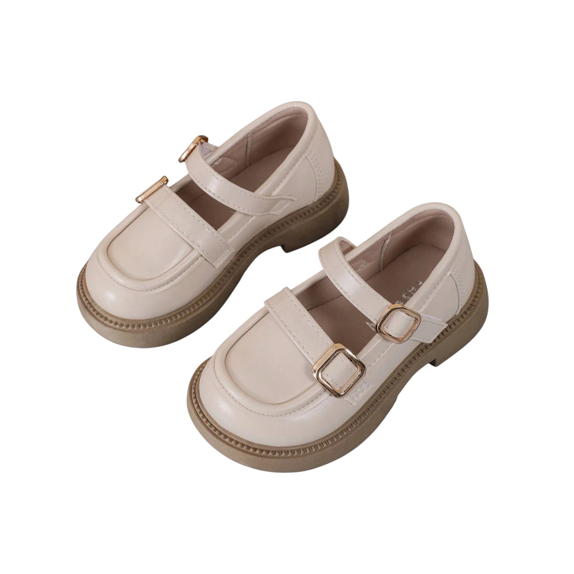 Címke nélküli, bézs, műbőr Mary Jane cipő, két csatos pánttal, vastag, barázdált talppal.