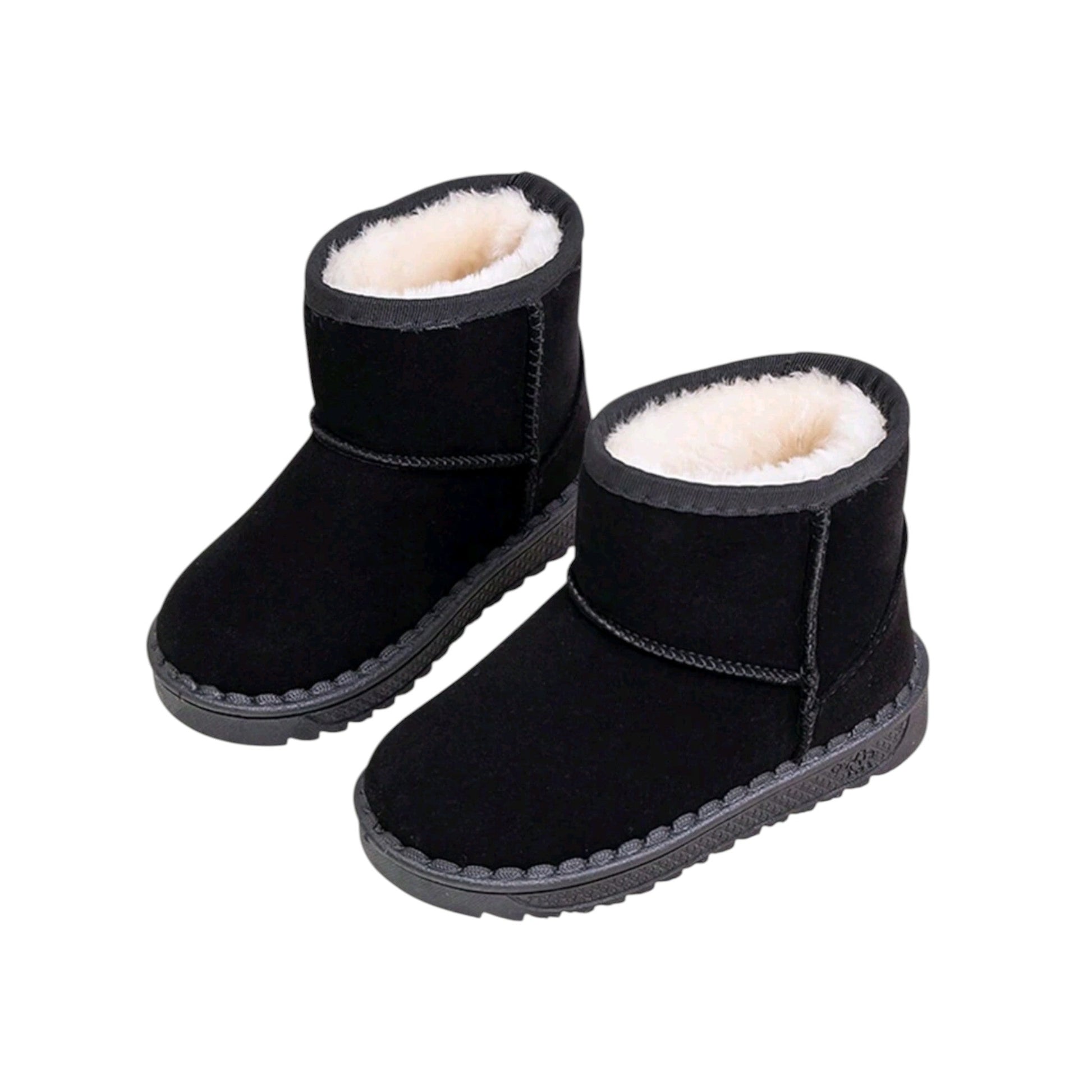 Címke nélküli, fekete, szőrmés bélésű, rövid szárú, vastag talpú bokacsizma. Belső talp hossz: 14,5cm