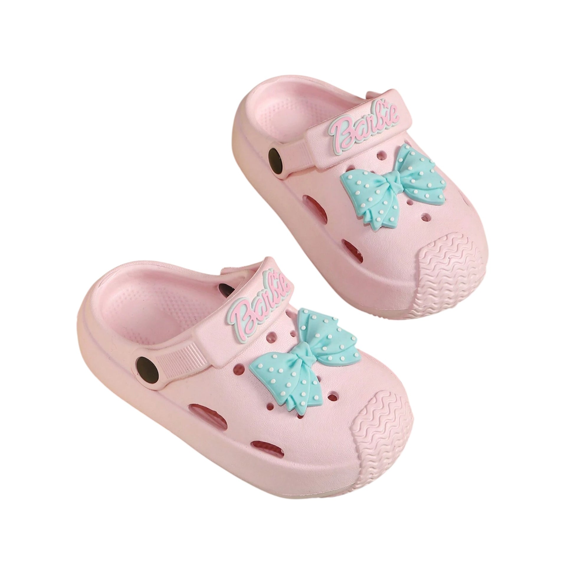Címke nélküli, rózsaszín, "Barbie" feliratos, masnival díszített, lyukacsos klumpa. Belső talp hossz: 17cm
