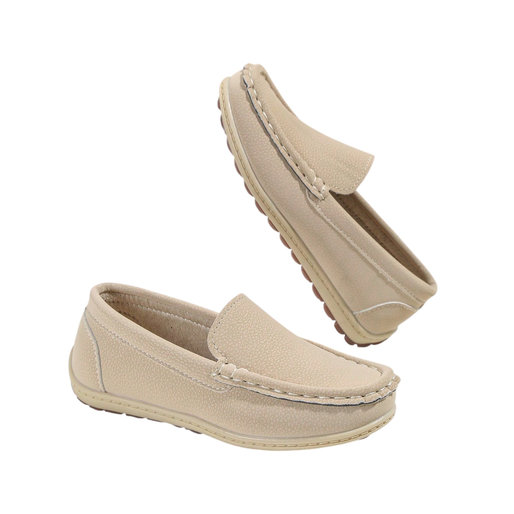 Címke nélküli, drapp, mokaszin, kerek orrú, vastag talpú, díszvarrással. Belső talp hossz: 18,5cm