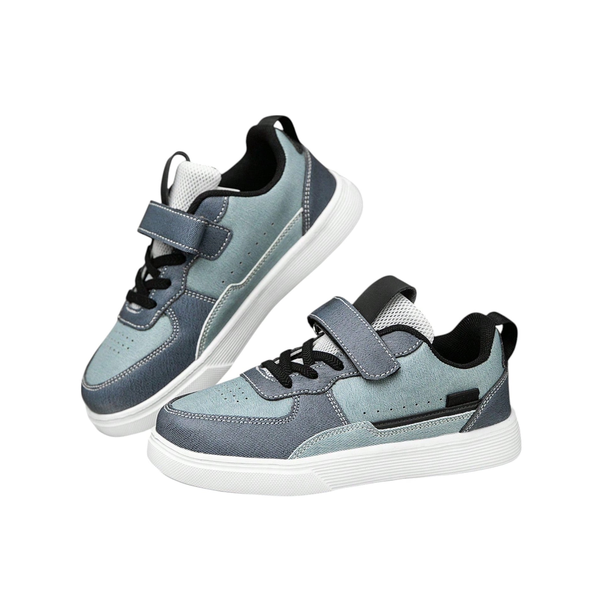 Címke nélküli, szürke és kék, tépőzáras, fűzős, fehér talpú.