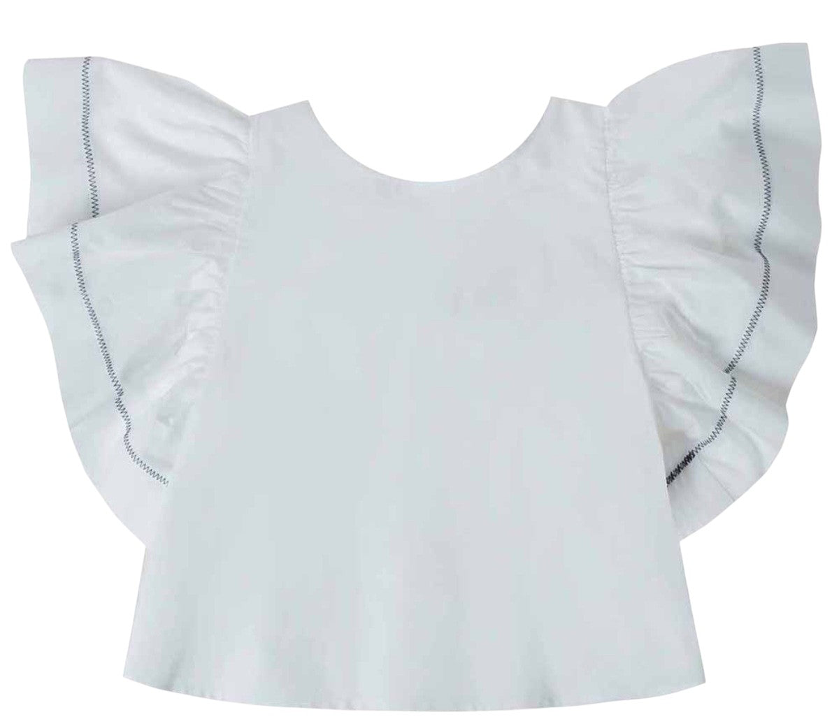 Címke nélküli, fehér, pamut, felső, környakkivágás, fodros ujjú.