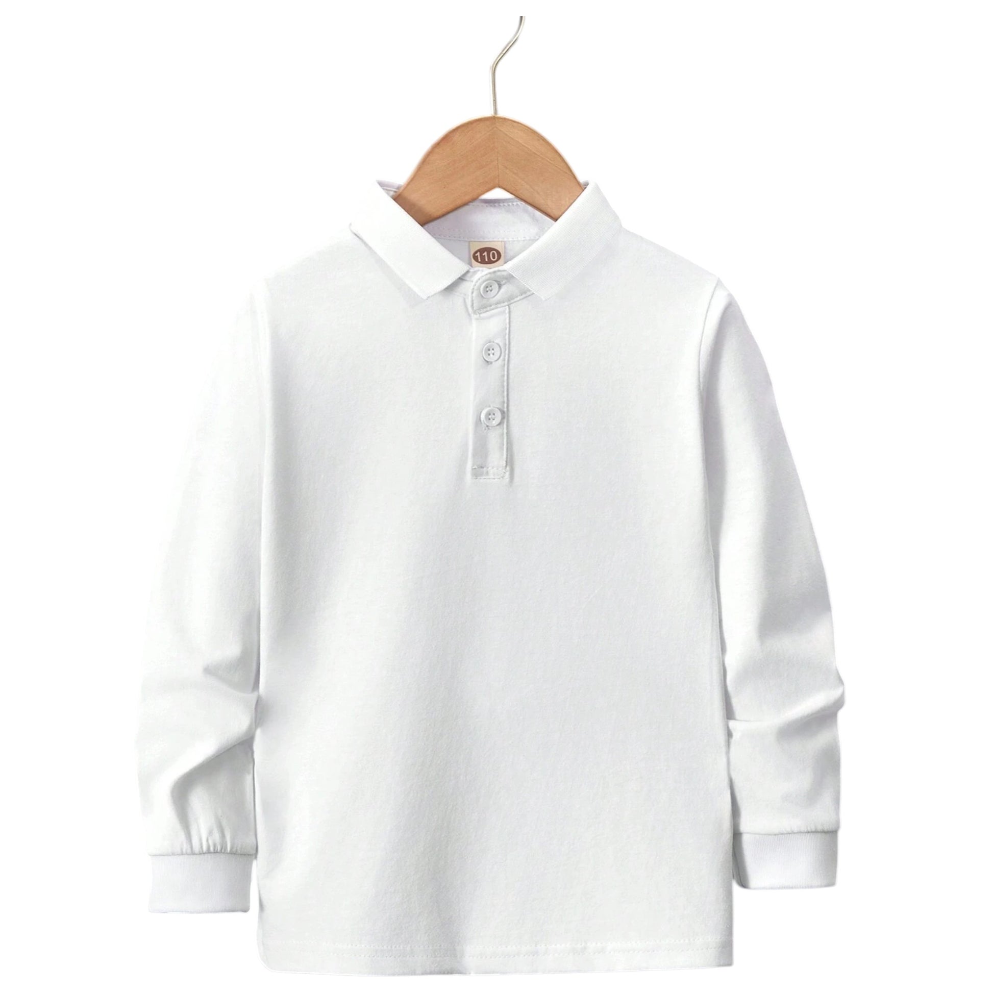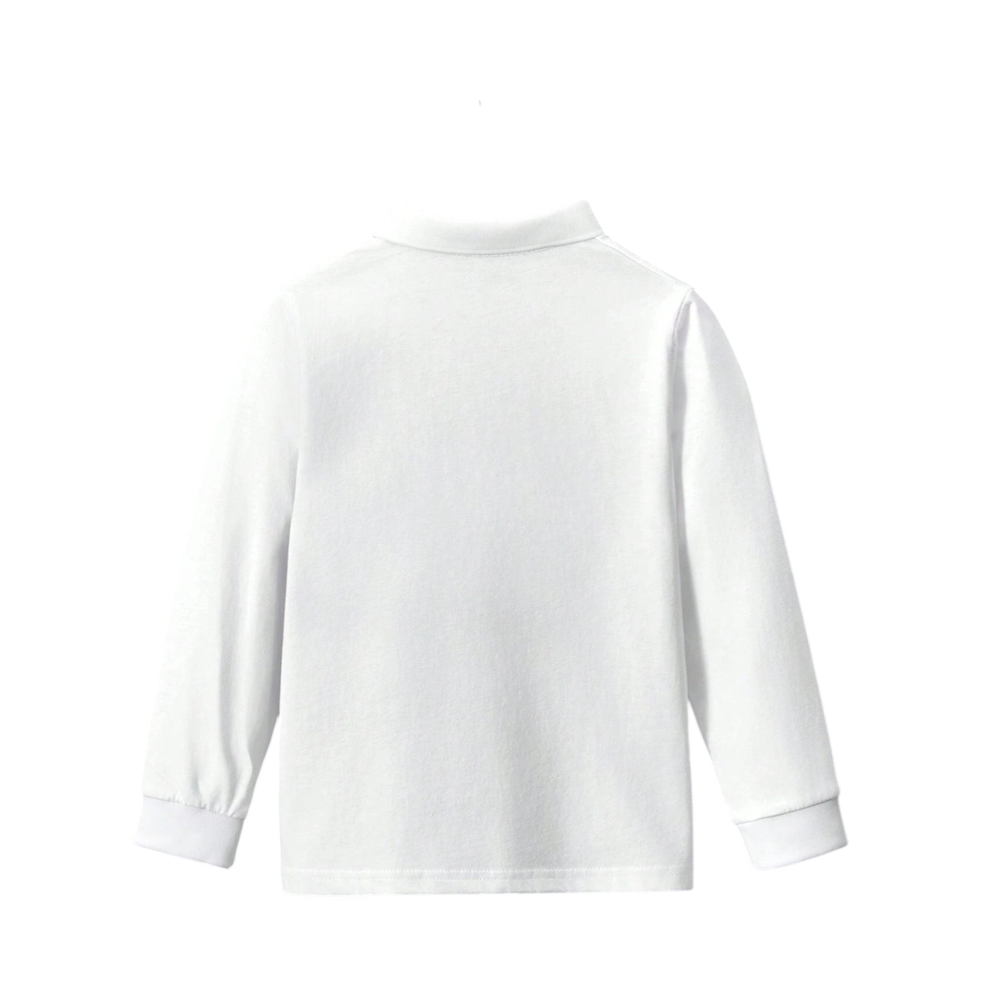 Címke nélküli, fehér, galléros, hosszú ujjú póló.