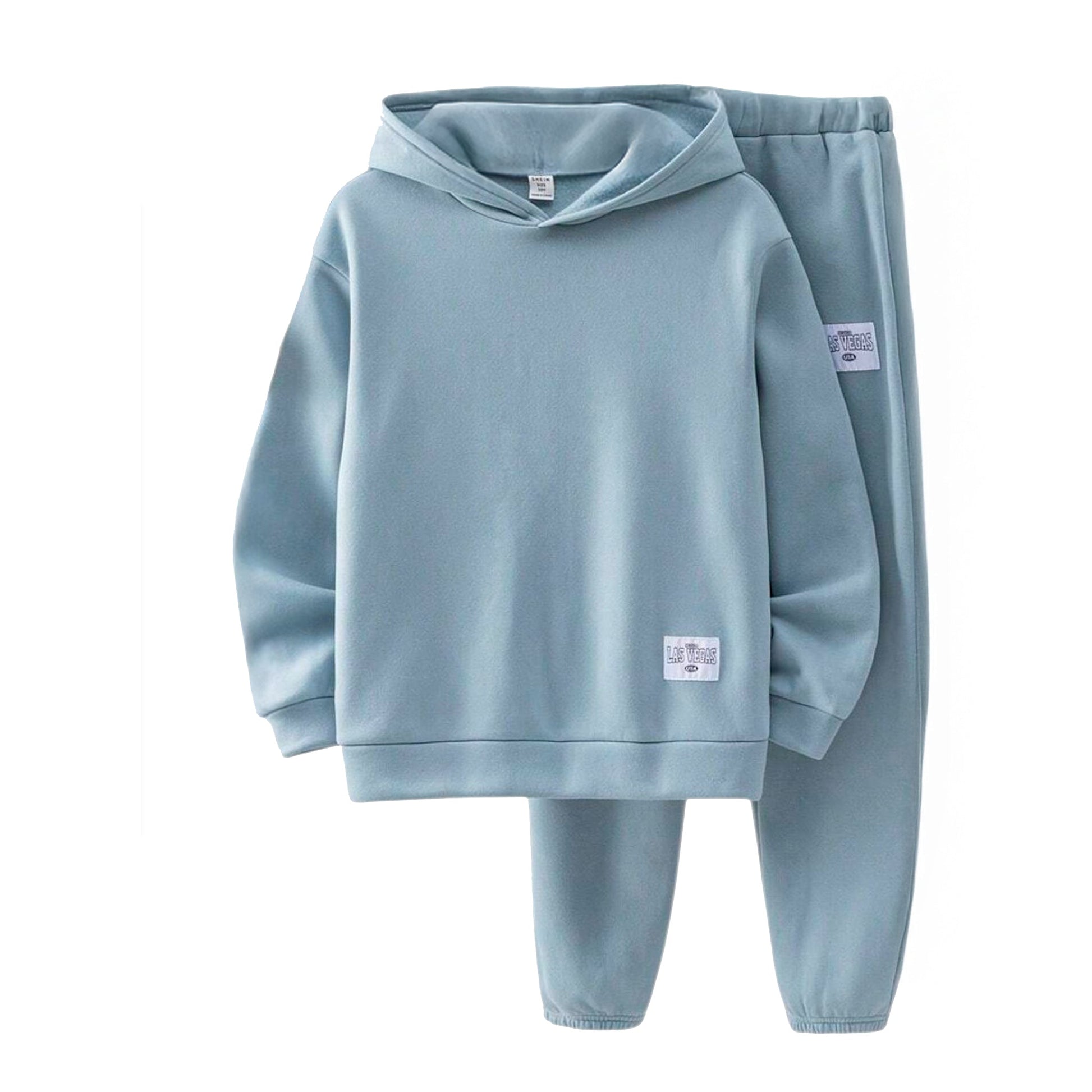Címke nélküli, többszínű (kék, szürke, fekete), kapucnis pulóver és szabadidő nadrág szett.