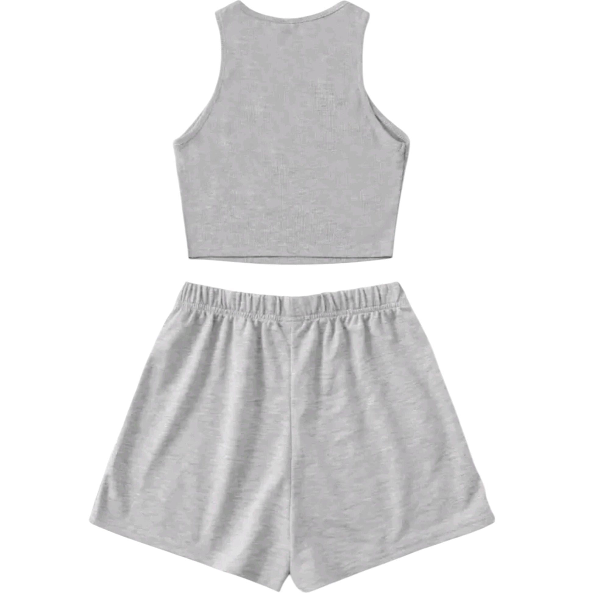 SHE szürke "Los Angeles" crop top és rövidnadrág szett
