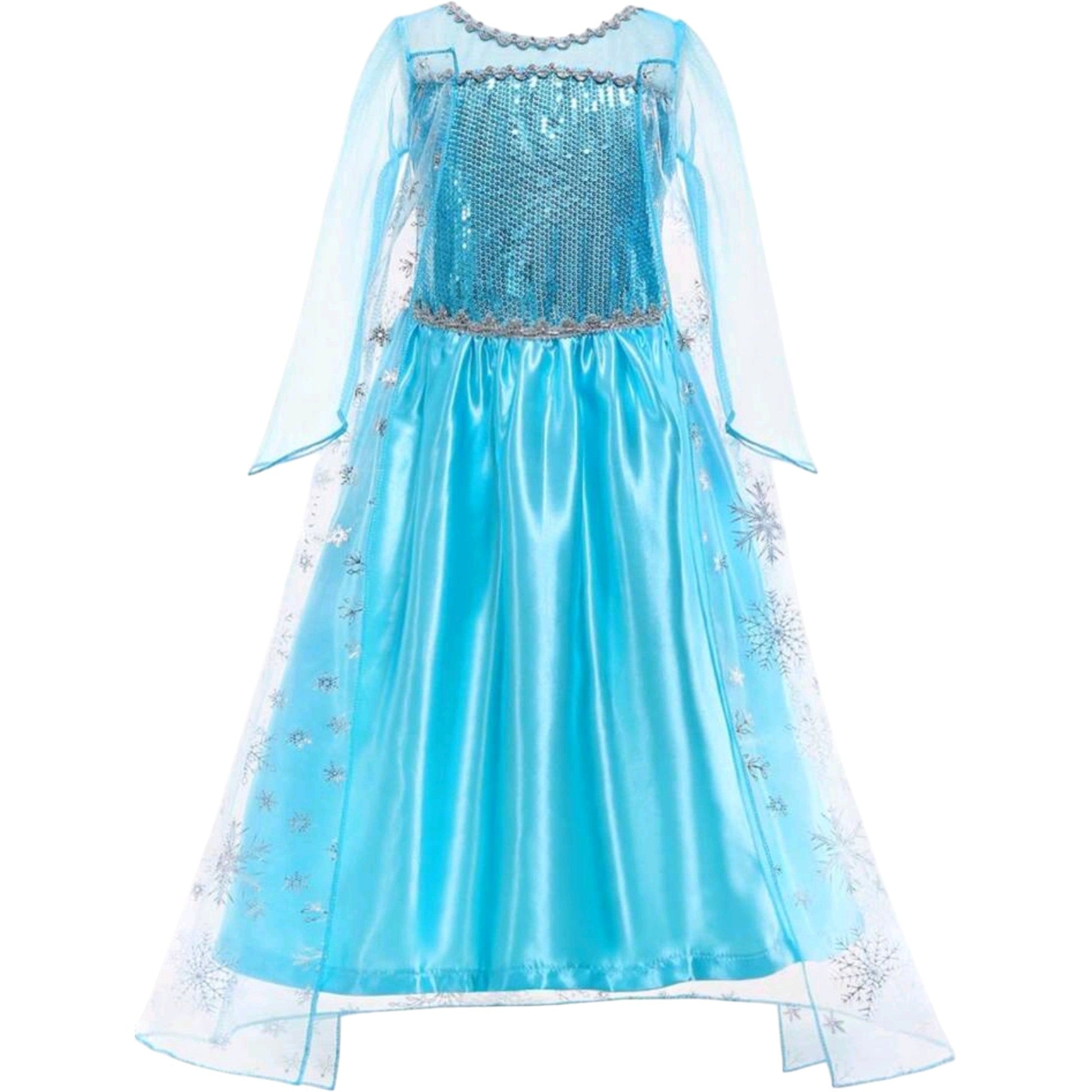 Címke nélküli, kék, hosszú maxi ruha. Flitteres felsőrész, fényes selyem alsórész, átlátszó tüll réteg ezüst hópehely mintával, hosszú áttetsző ujjakkal.