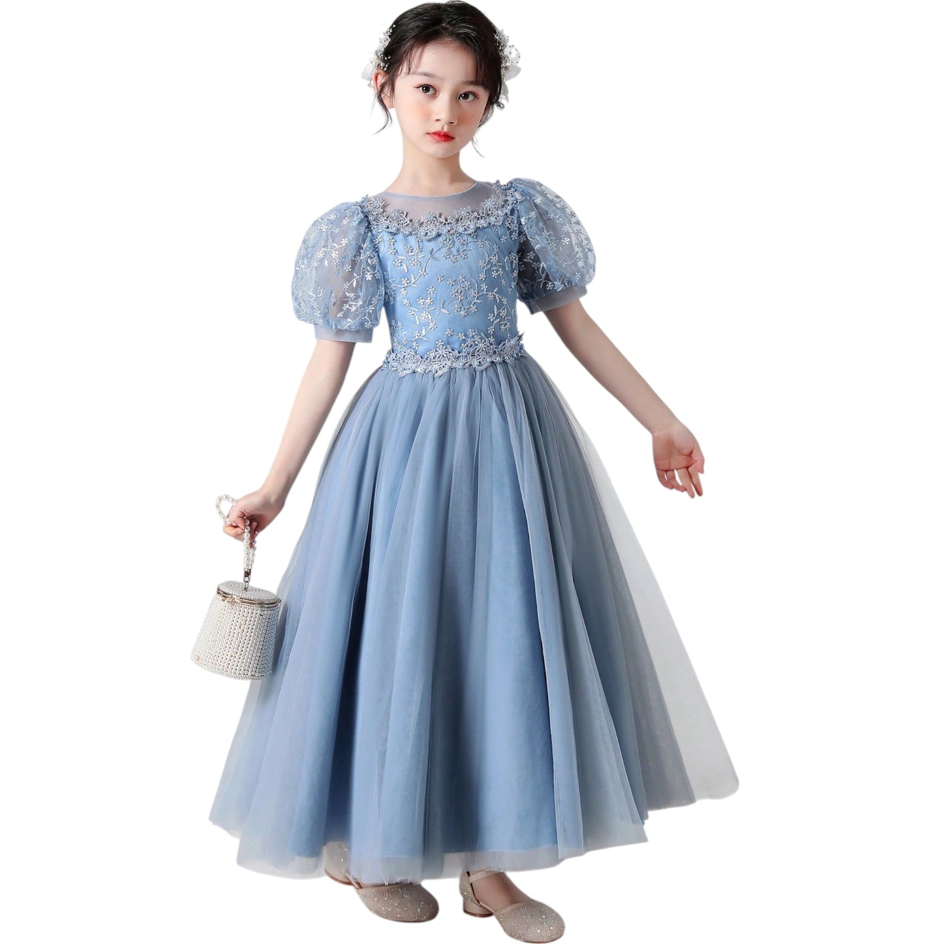 Címke nélküli, kék színű, tüll szoknyás, puffos ujjú alkalmi ruha.
