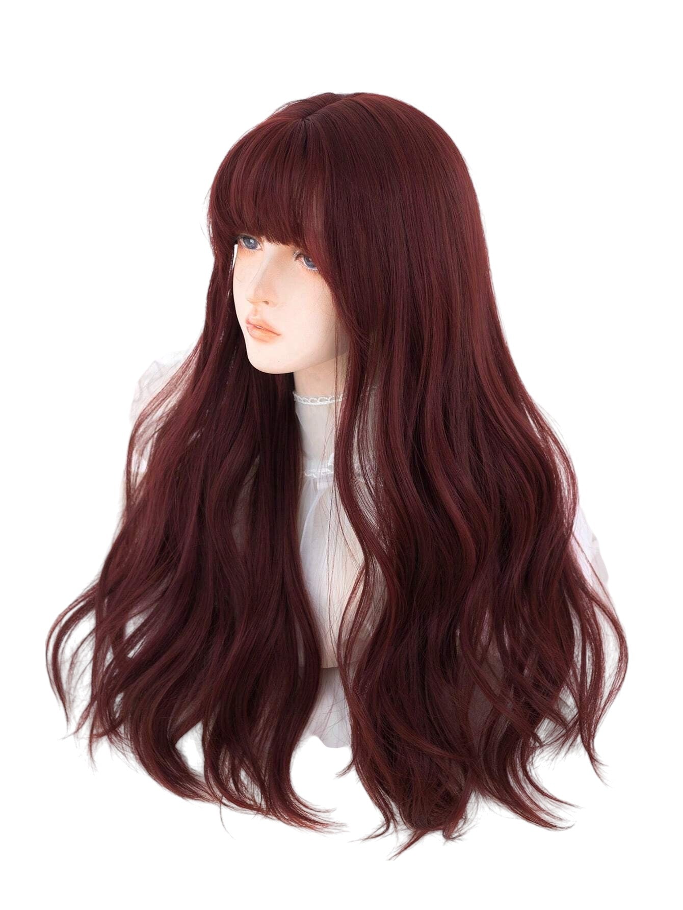 Címke nélküli, burgundi, hosszú, hullámos, frufrus paróka