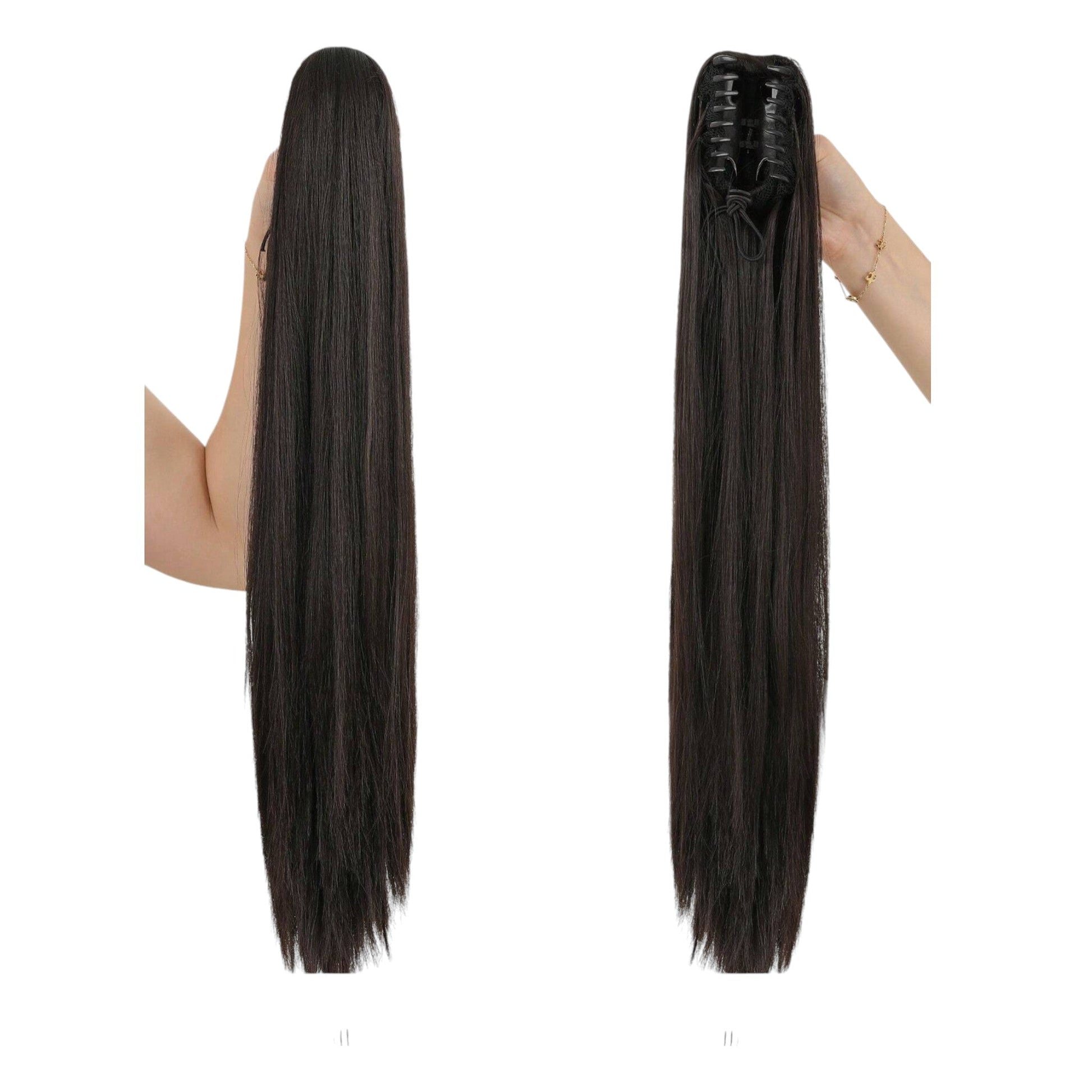 Címke nélküli, fekete, hosszú, egyenes mesterséges haj, csattal rögzíthető.