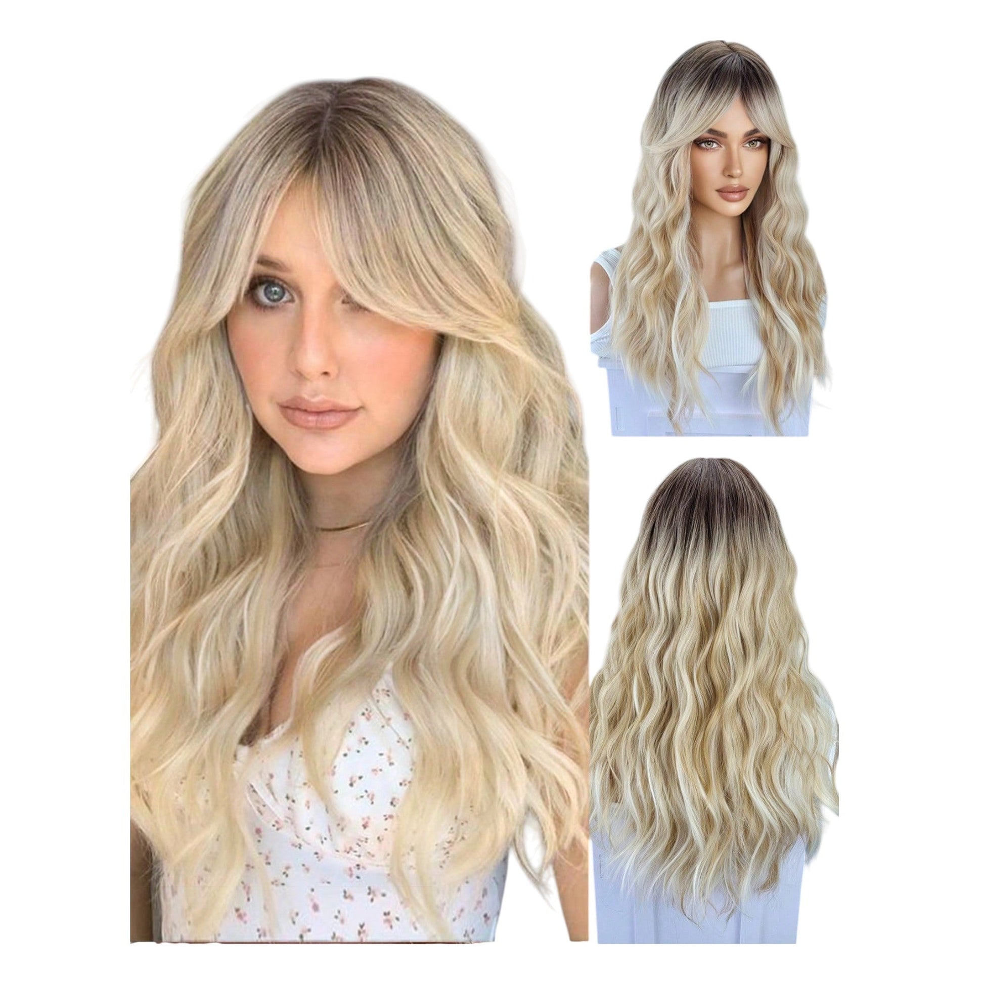 Címke nélküli, szőke, hosszú, hullámos, balayage stílusú, frufruval.