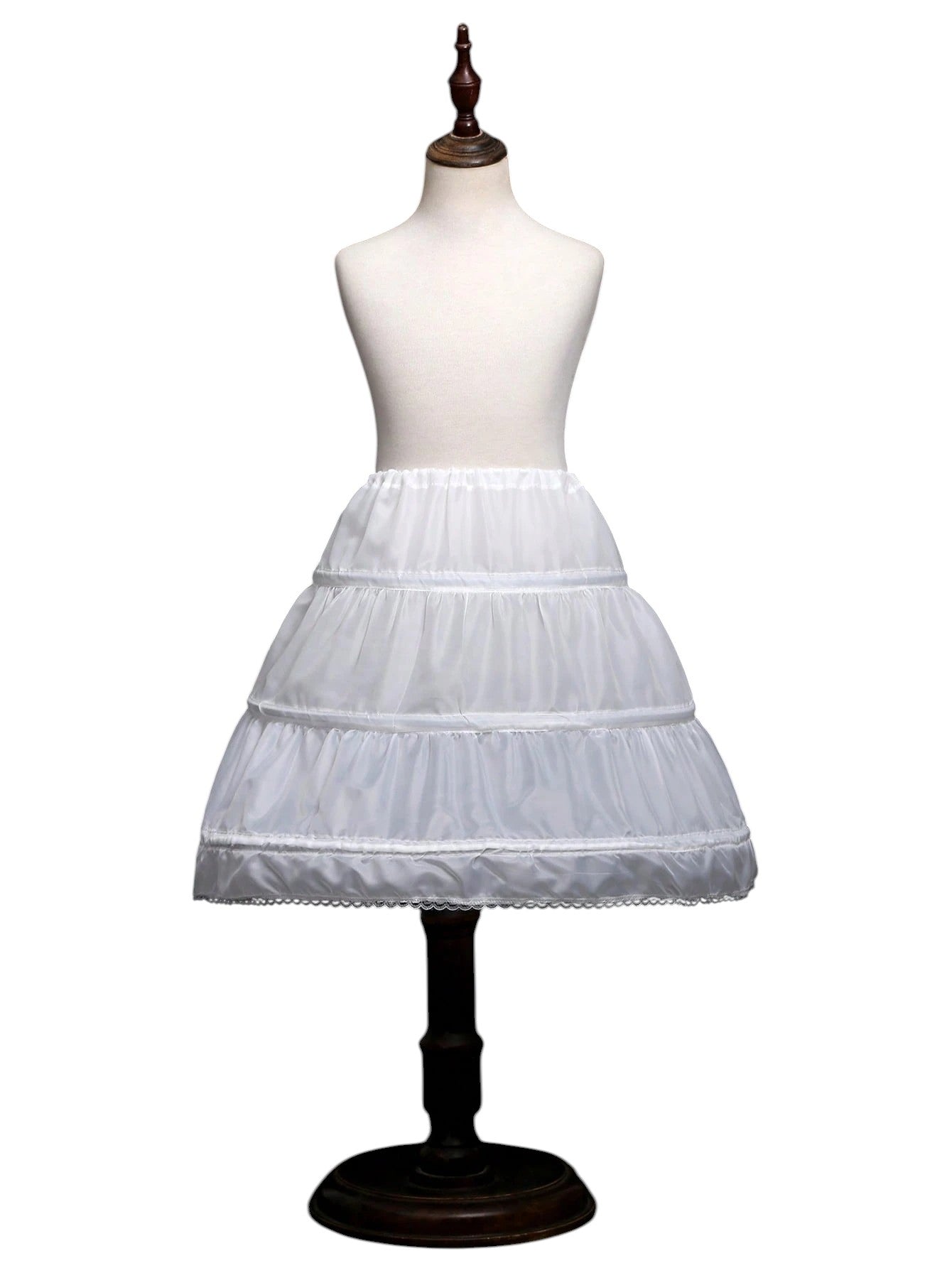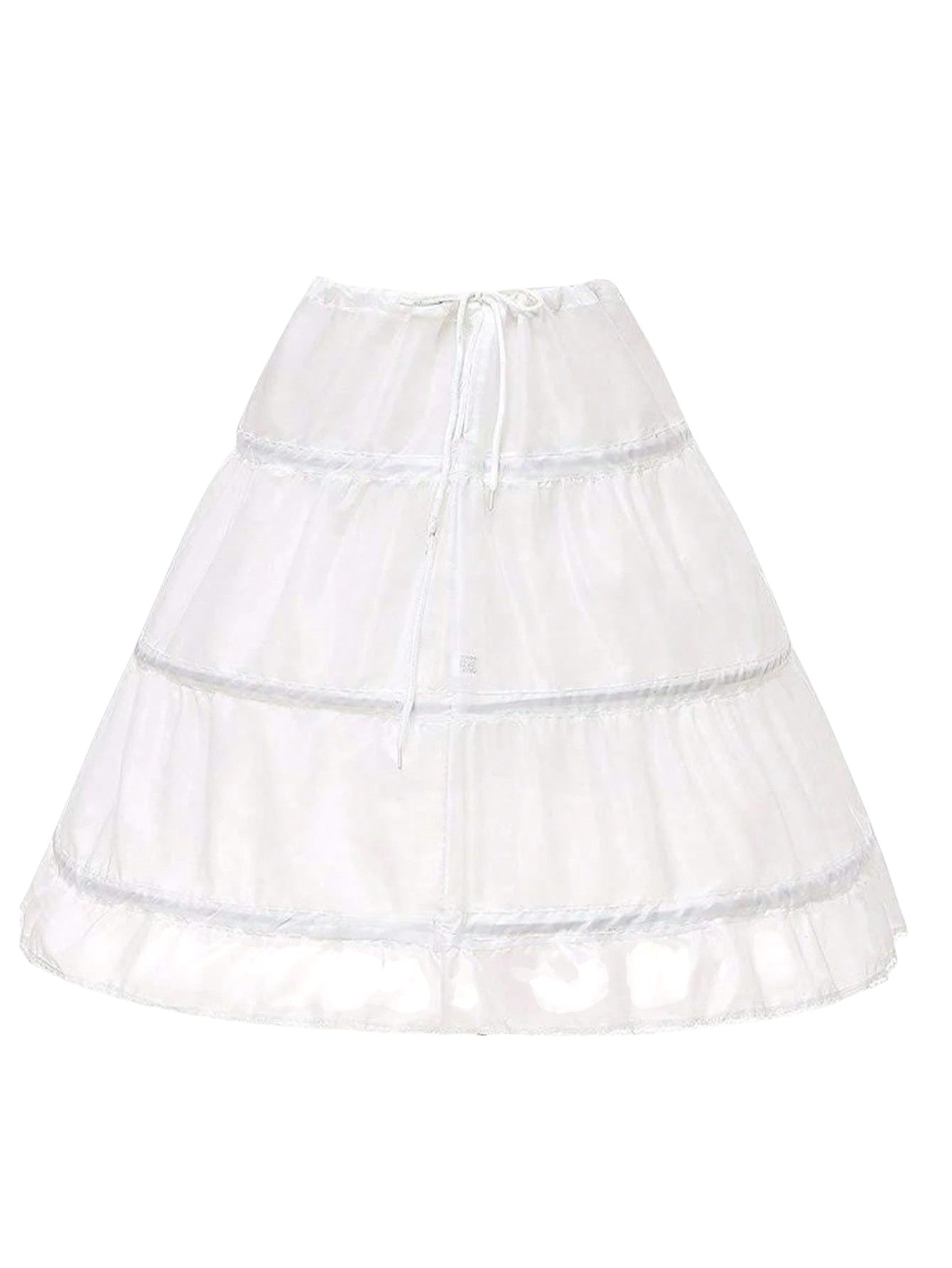 Címke nélküli, fehér, többrétegű, fodros tüllből készült alsószoknya, rugalmas derékpánttal.