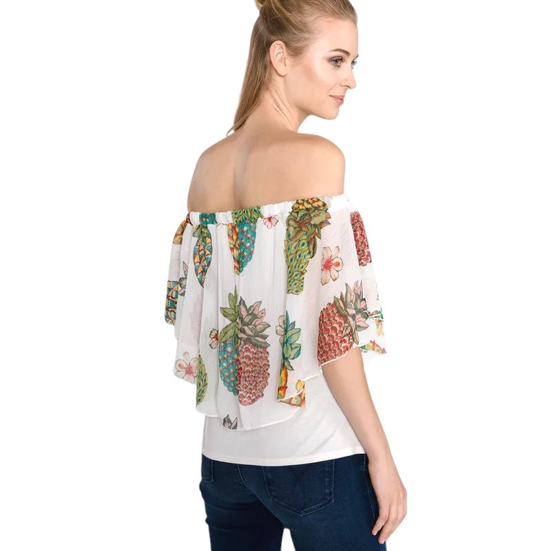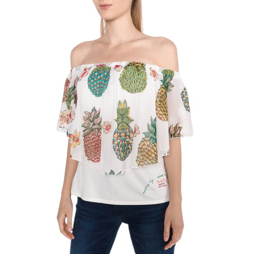 DESIGUAL fehér ananászmintás váll nélküli réteges blúz