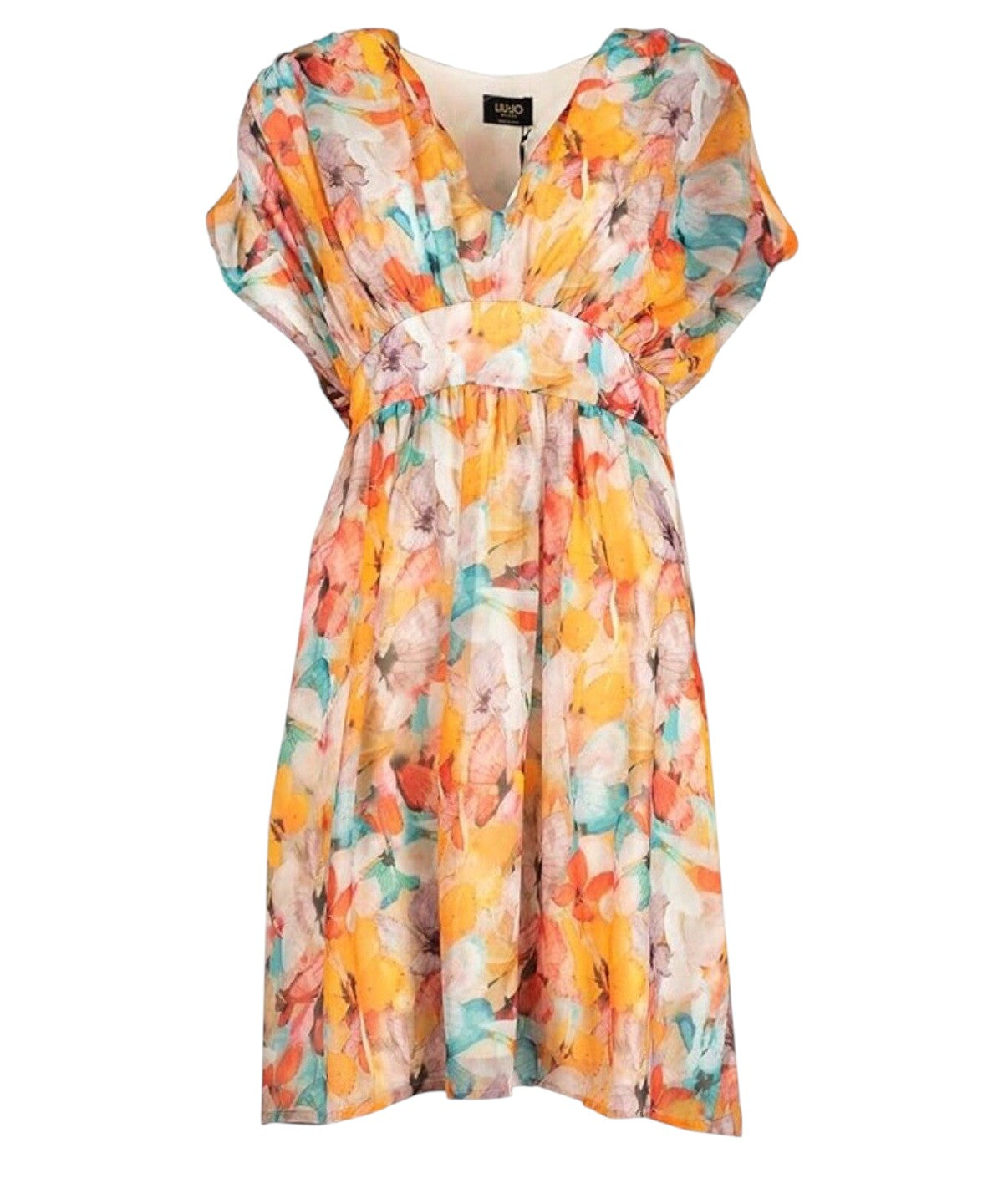 LIU JO többszínű virágmintás V-nyakú sifonruha