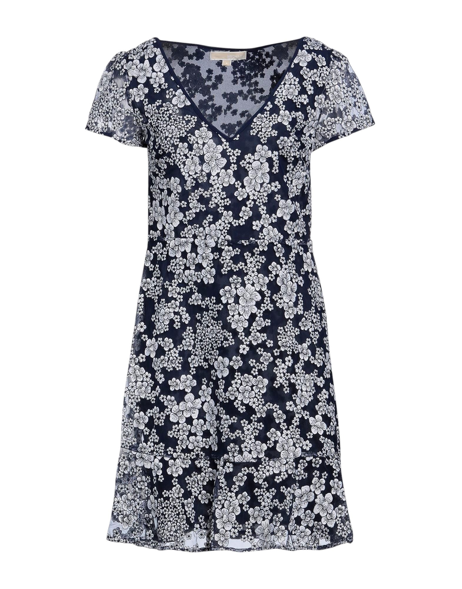 MICHAEL KORS sötétkék virágmintás V-nyakú ruha