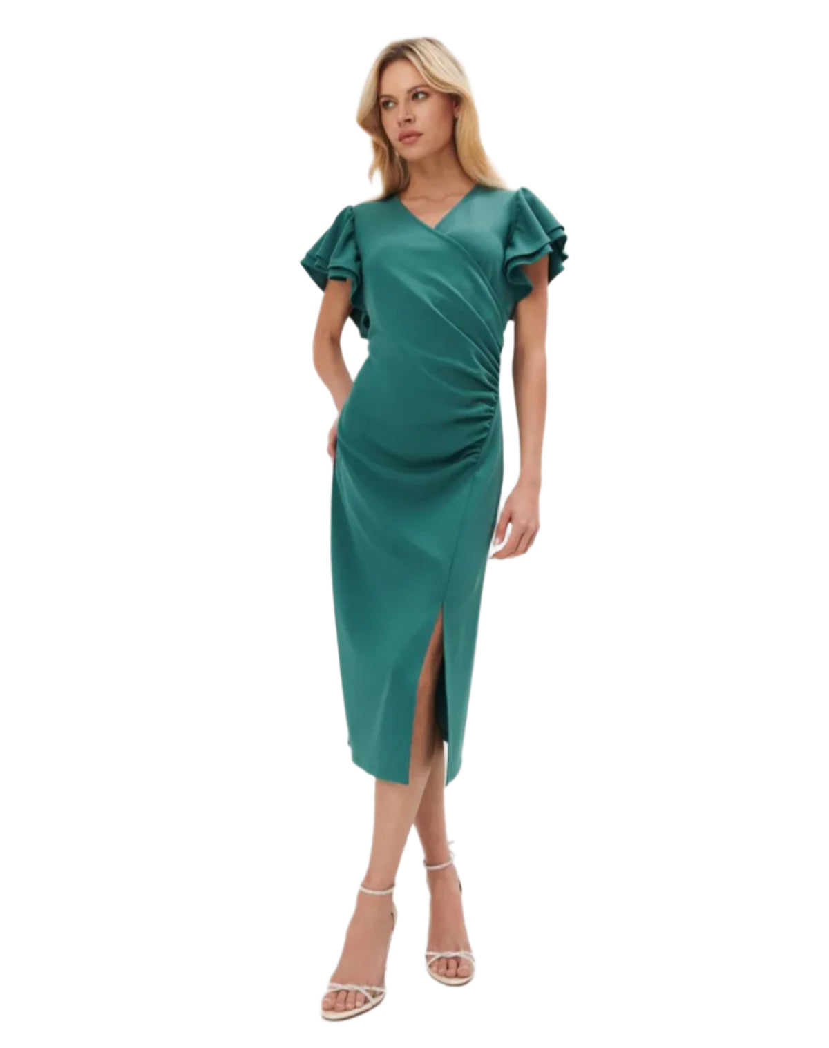 MOHITO zöld fodros ujjú elegáns midi ruha