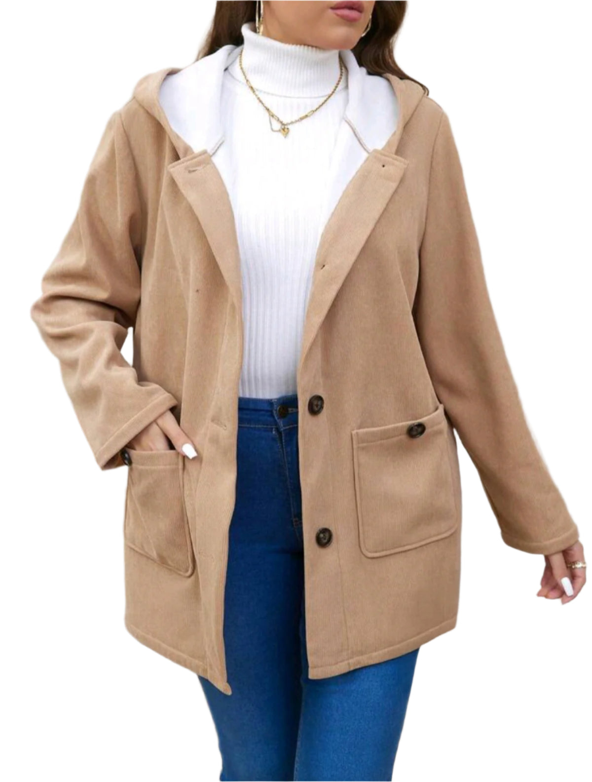 SHE bézs kapucnis kordbársony kabát
