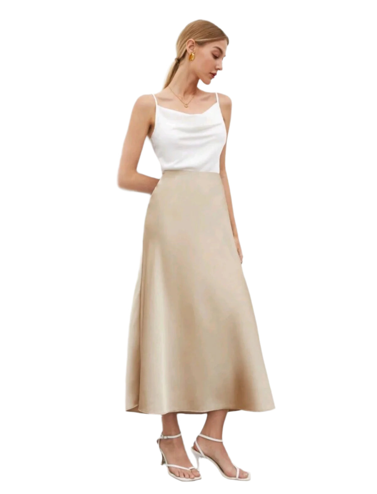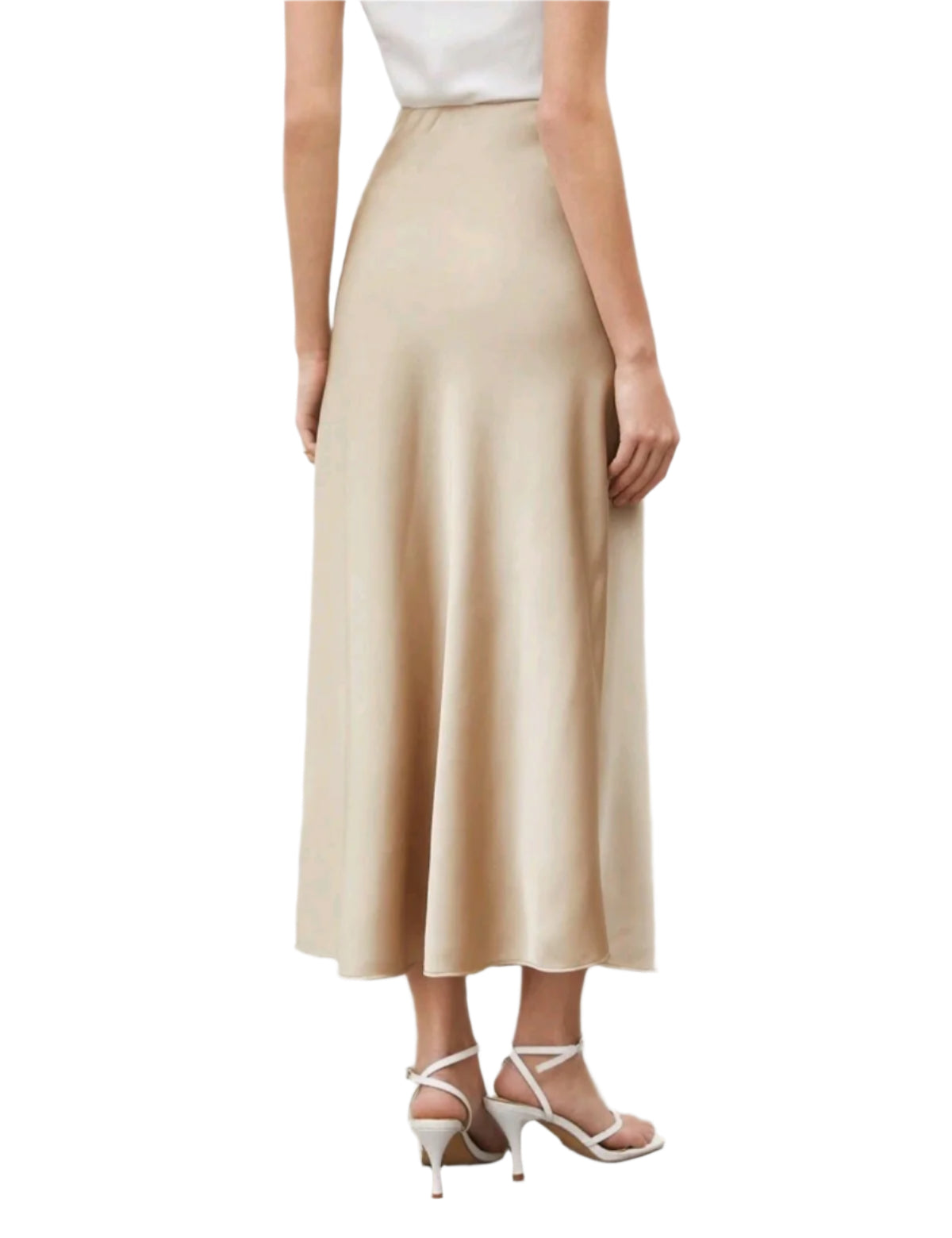 SHE bézs szatén midiszoknya