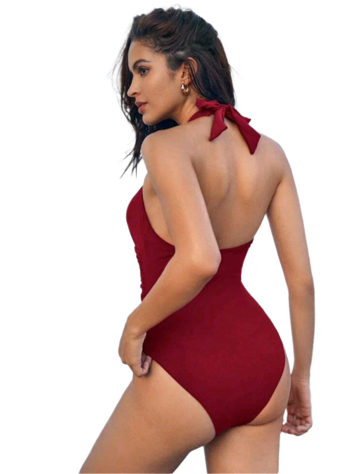 SHE bordó mély dekoltázsú egyrészes fürdőruha