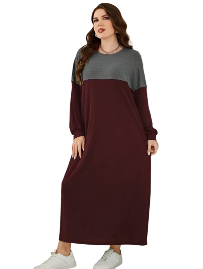 SHE bordó-szürke laza hosszú ujjú maxi ruha