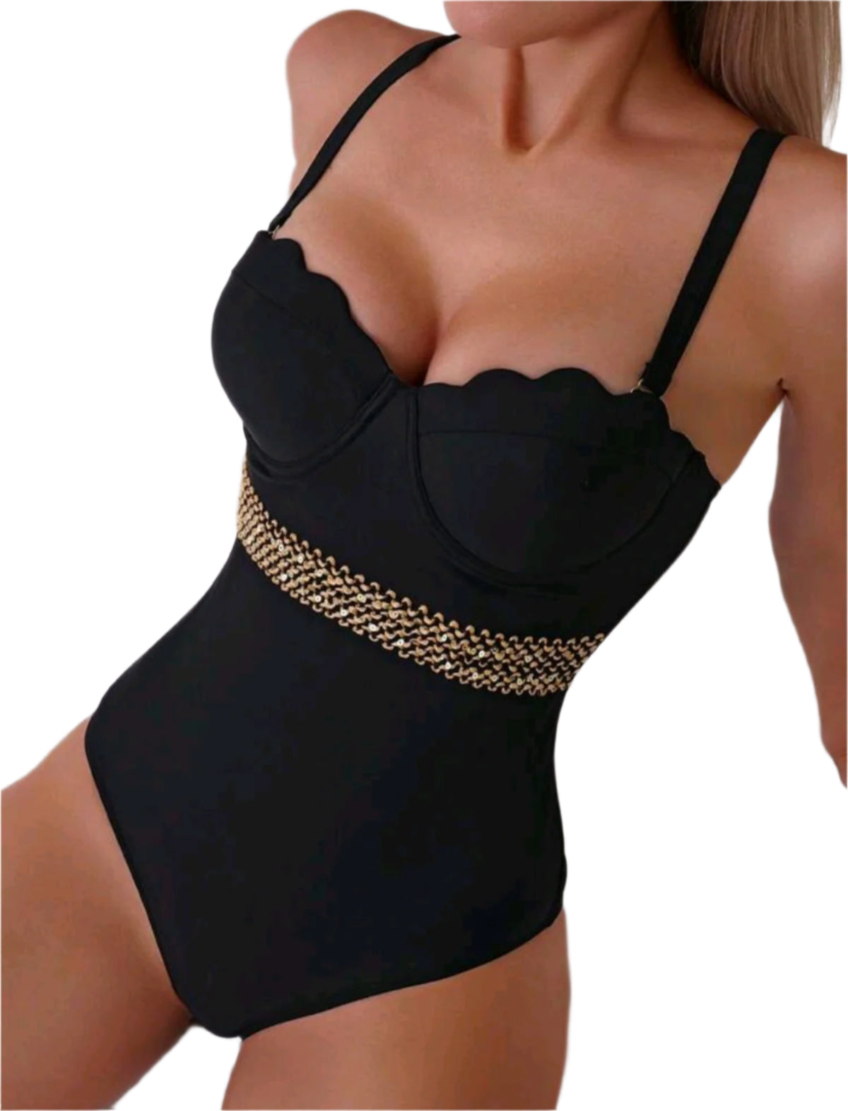 SHE fekete aranyszegélyes egyrészes fürdőruha