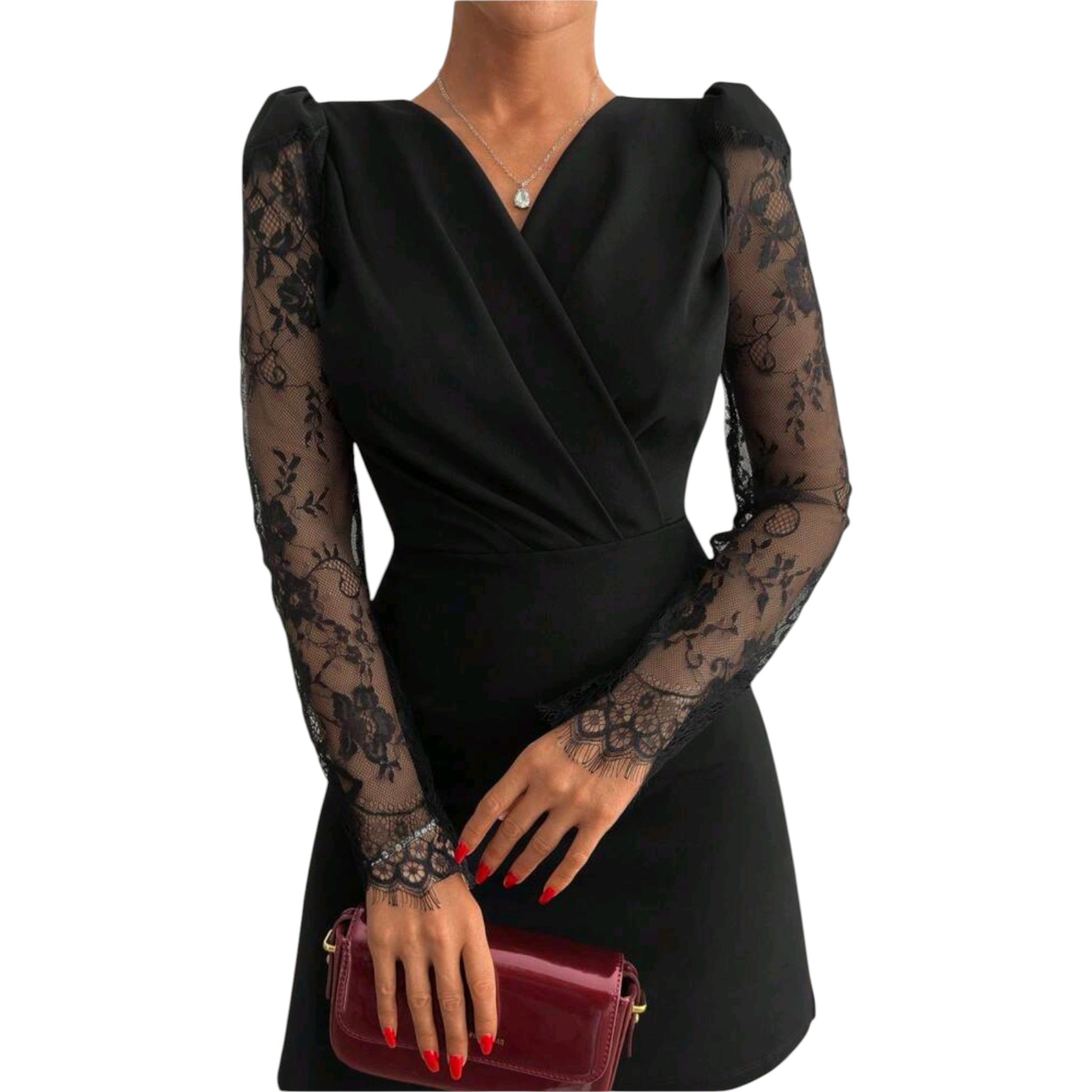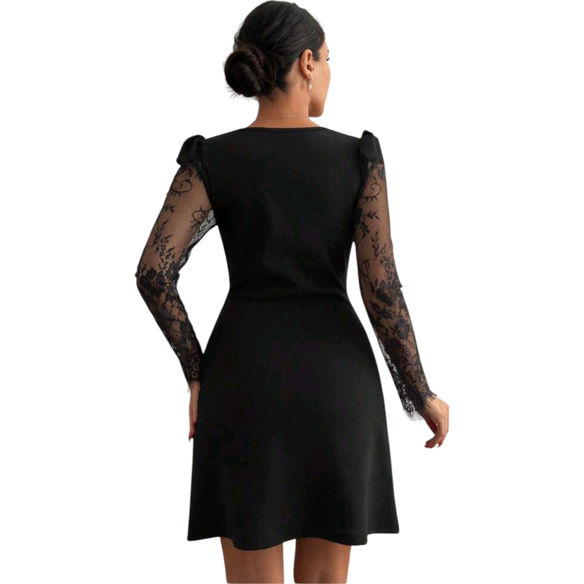 SHE fekete csipke ujjú mini ruha