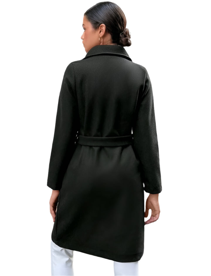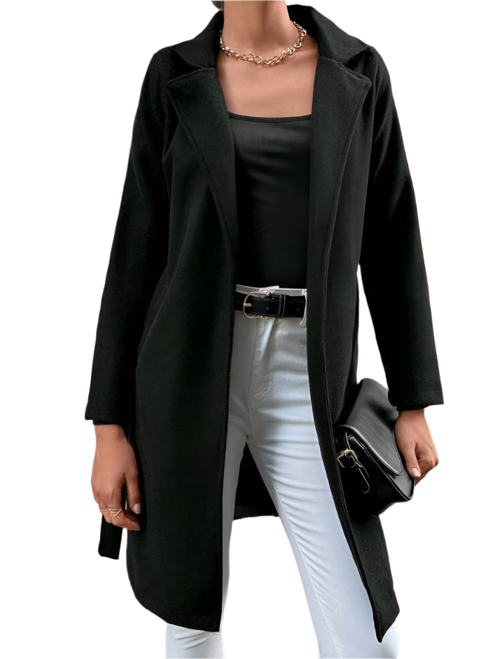 Címke nélküli, letisztult és elegáns fekete kabát, amely tökéletes választás az őszi-téli szezonra. Karcsúsított fazonja kiemeli az alakot, nyitott elöl kialakítása pedig modern és sokoldalú viseletet biztosít. Könnyedén kombinálható hétköznapi és alkalmi szettekkel is!