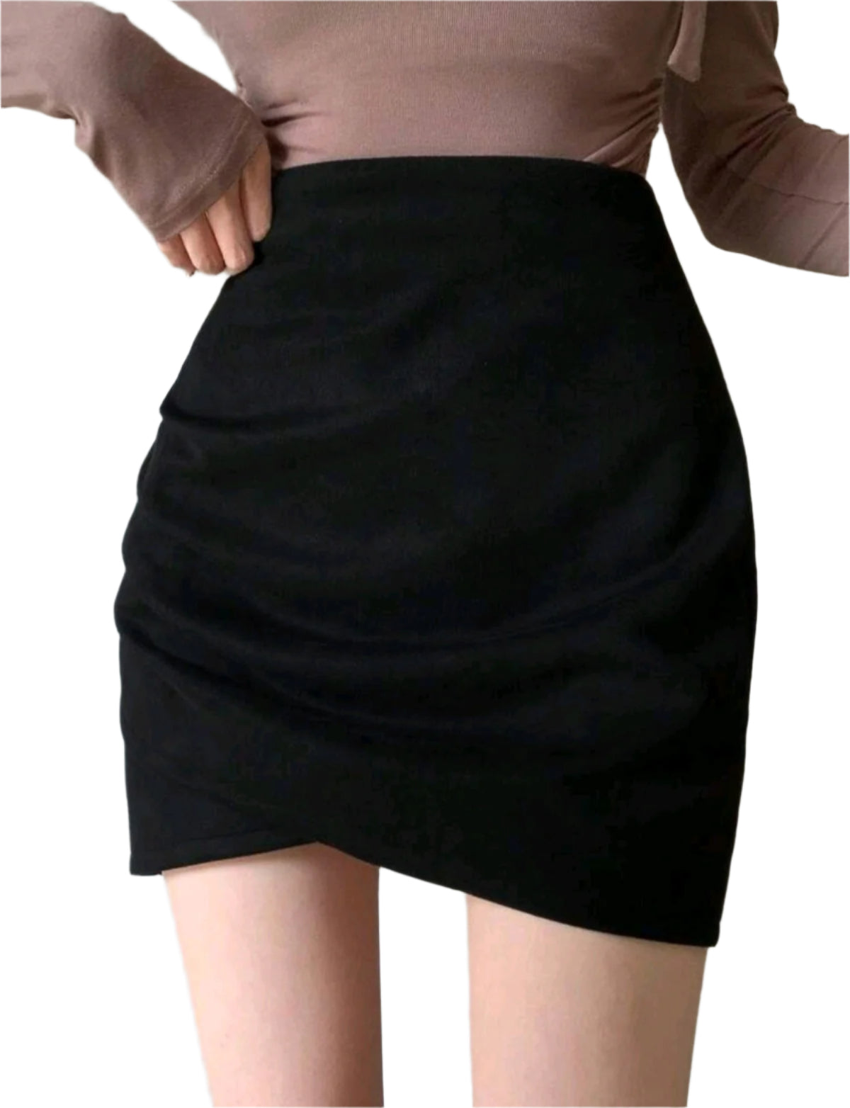 Címke nélküli, elegáns fekete miniszoknya. Magas derekú kialakítás, amely kiemeli az alakot. Puha, rugalmas anyagból készült, amely kényelmes viseletet biztosít. Aszimmetrikus szabás és finom ráncolás a nőies és modern megjelenésért. Alkalmas mindennapi viseletre és alkalmi eseményekre egyaránt.