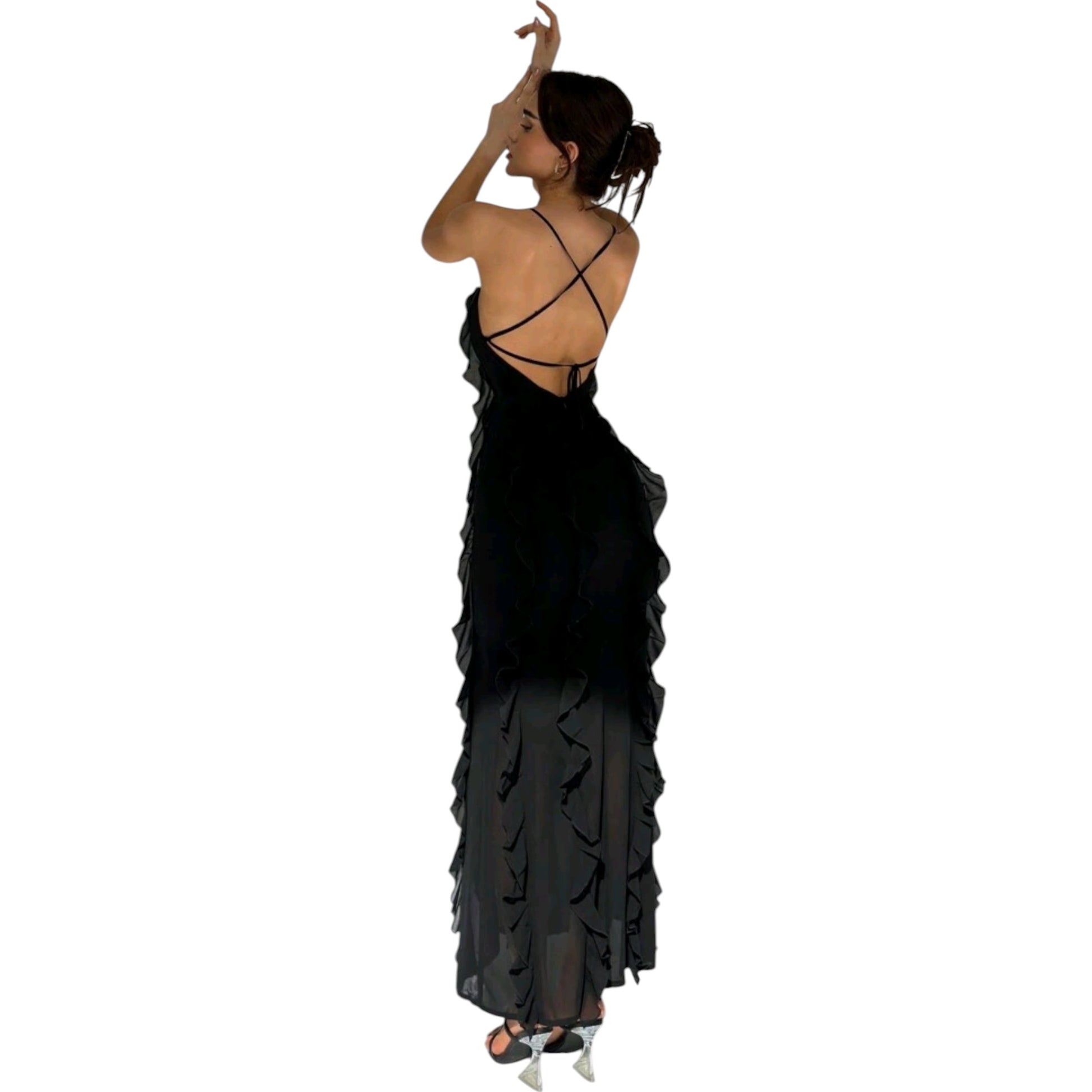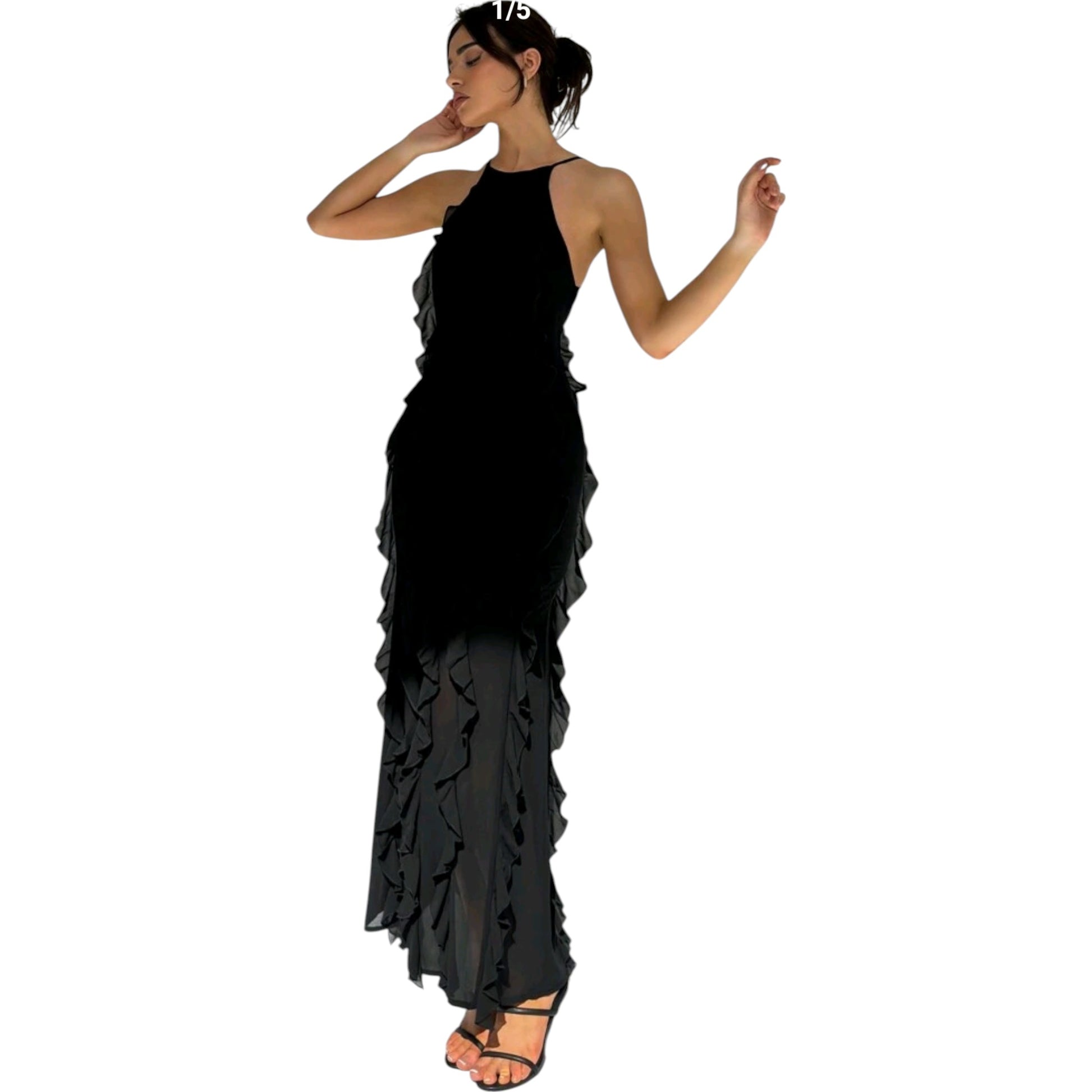 SHE fekete fodros maxi ruha