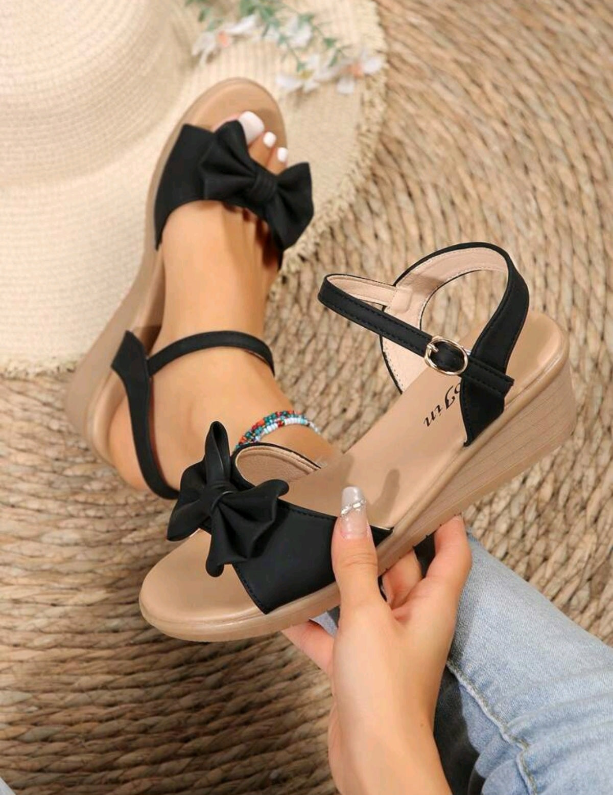 Címke nélküli, nőies fekete szandál elegáns masnival díszítve. Kényelmes, alacsony éktalpú kialakításának köszönhetően ideális hétköznapi viseletre. Állítható bokapánttal rendelkezik a tökéletes illeszkedés érdekében.