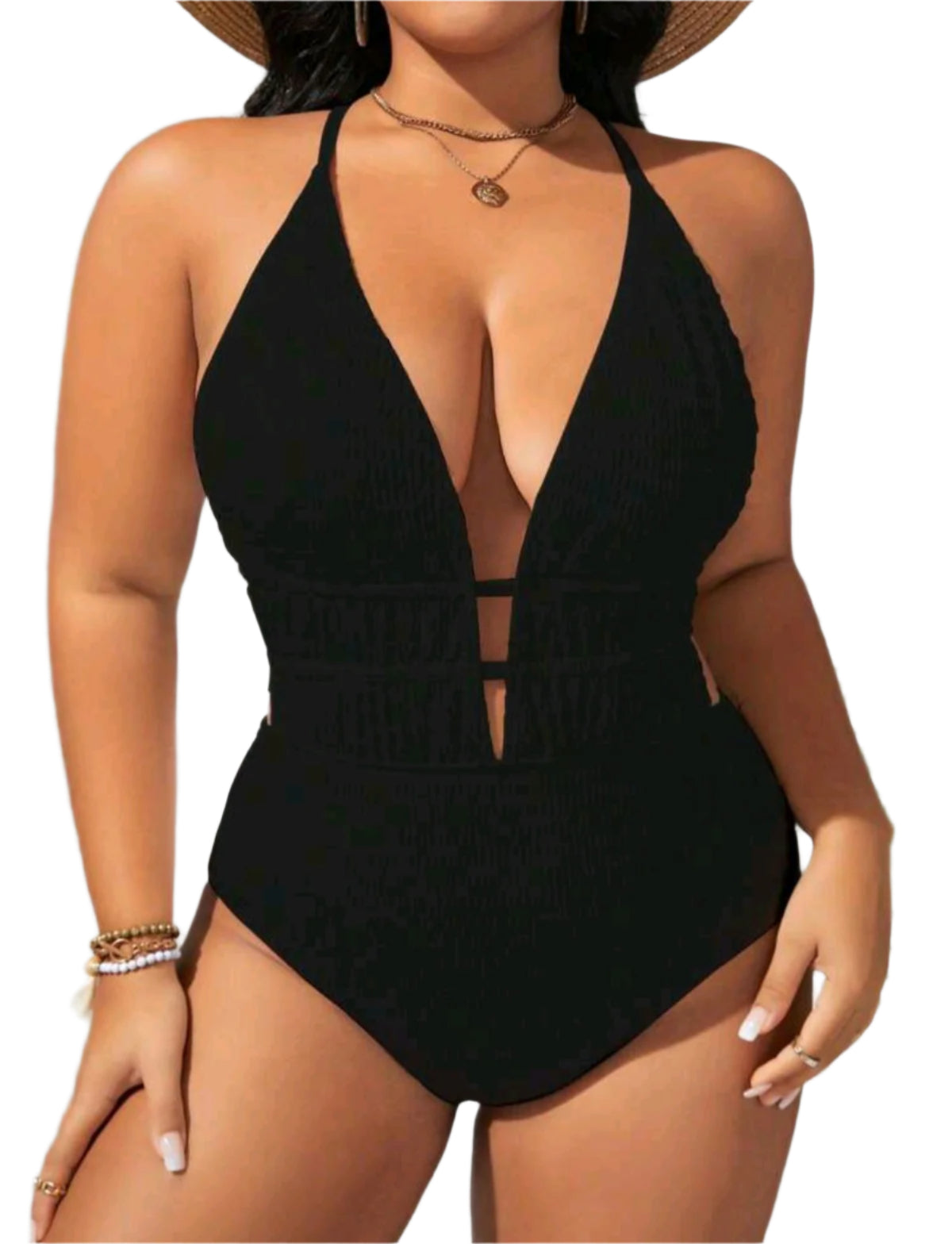 SHE fekete mélyen dekoltált egyrészes fürdőruha