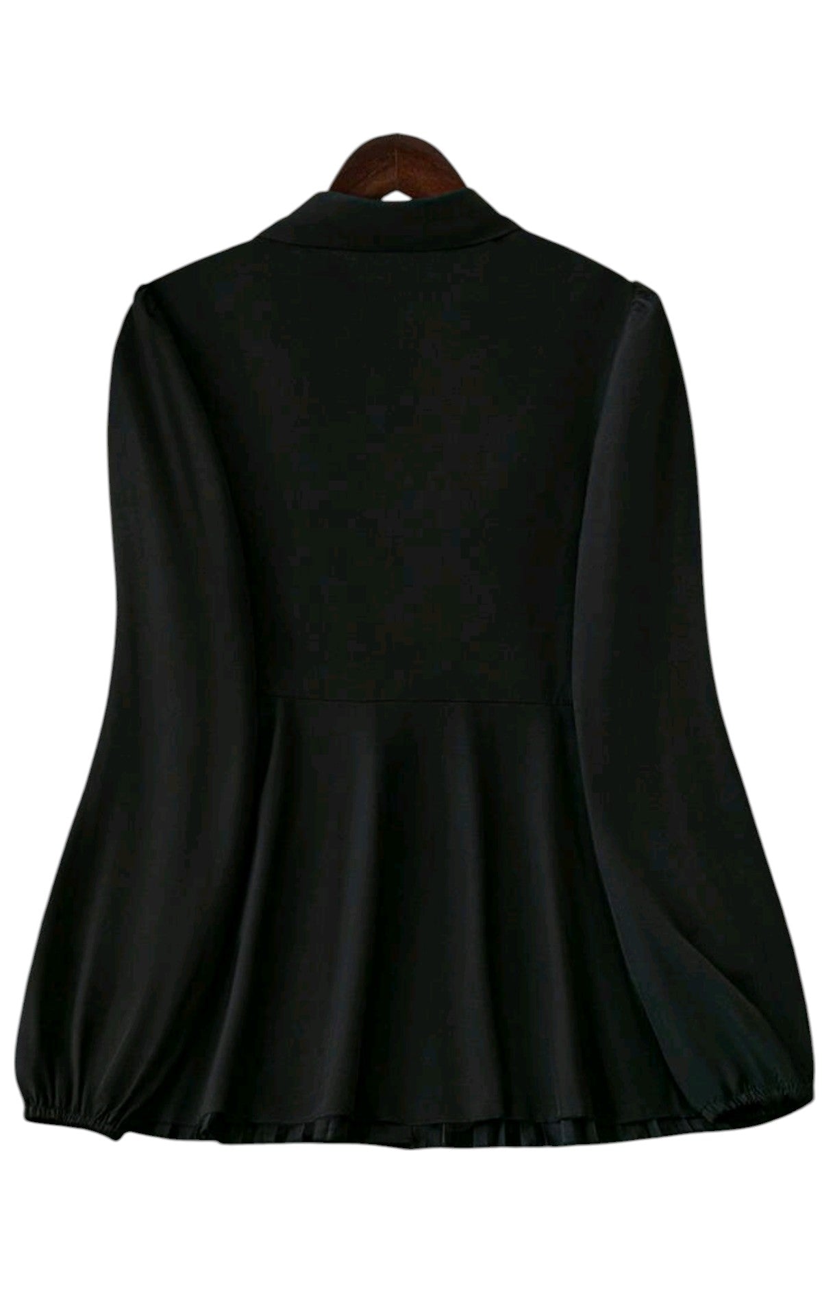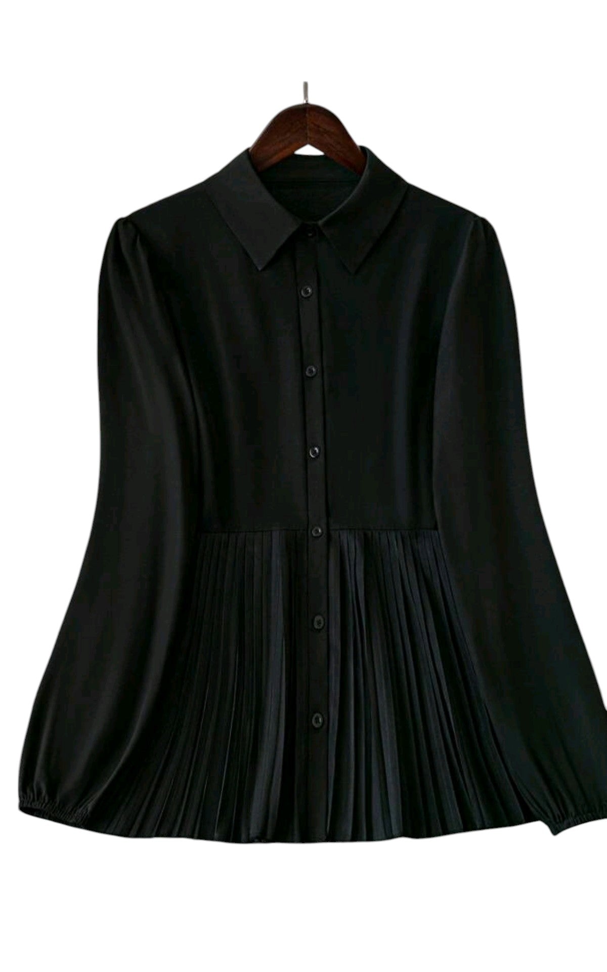 Címke nélküli, fekete, szövet, ing, hosszú ujjú, pliszírozott aljjal.