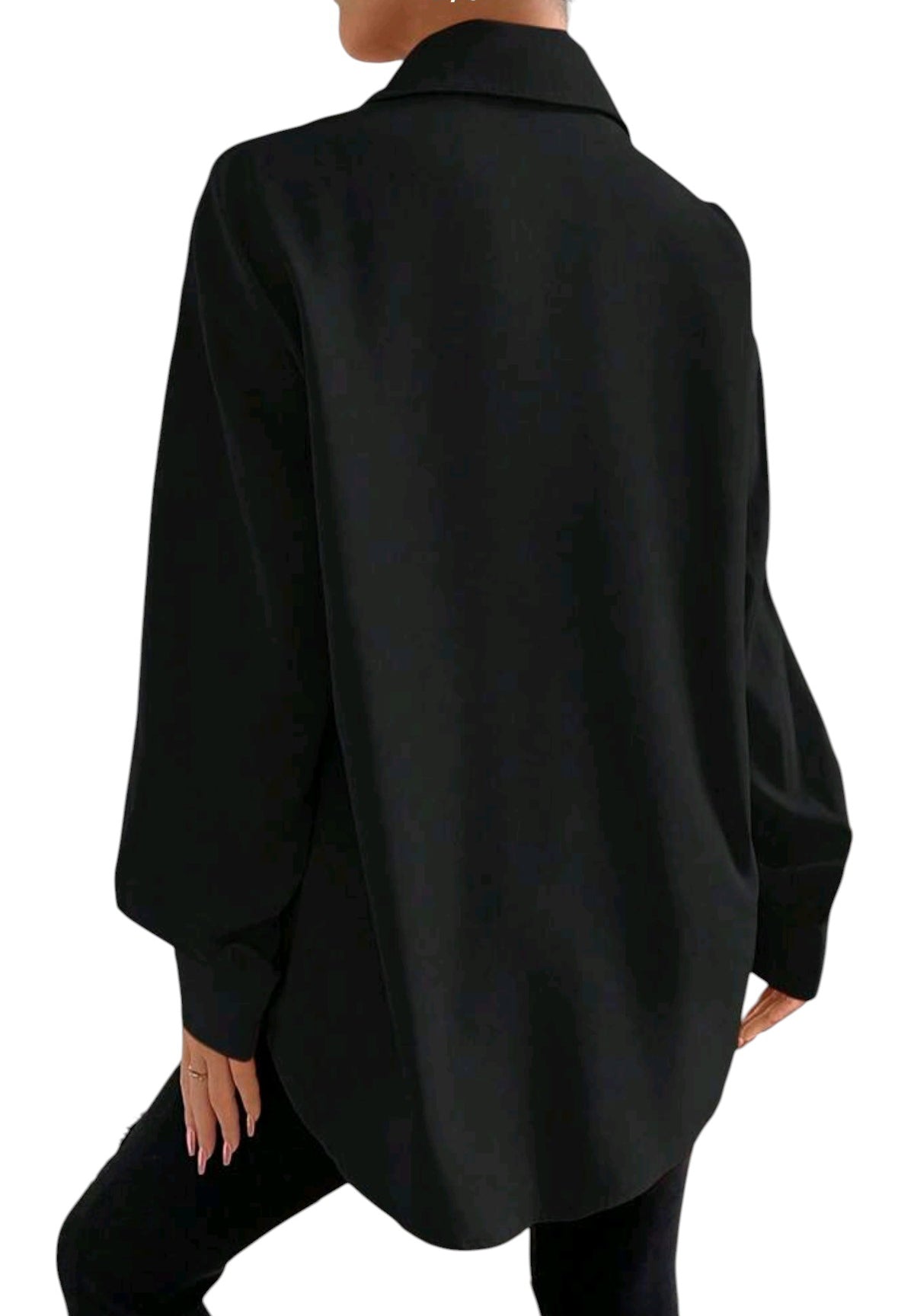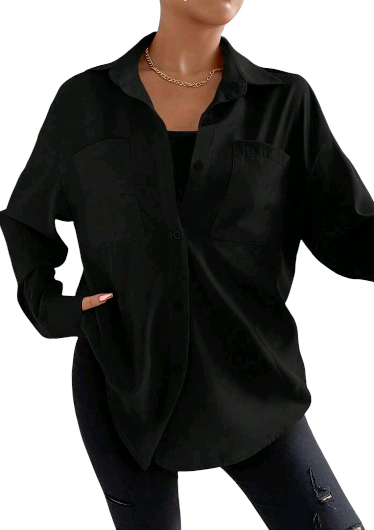 Címke nélküli, fekete, szövet, ing, hosszú ujjú, zsebekkel.