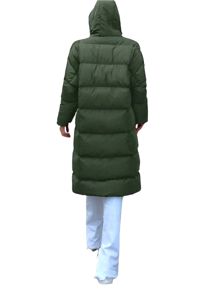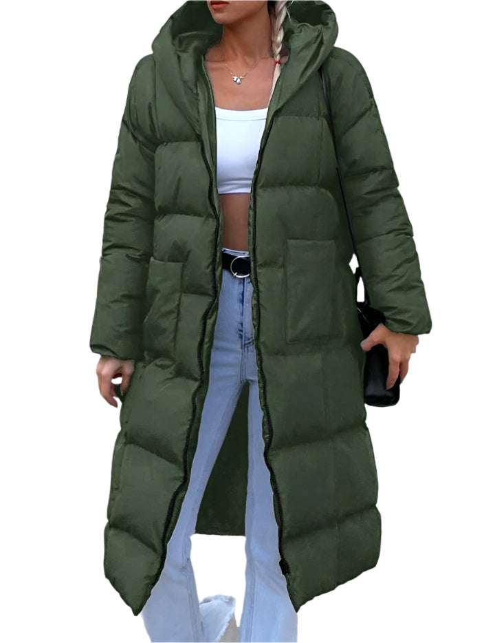 SHE hosszú steppelt kabát kapucnival - khaki