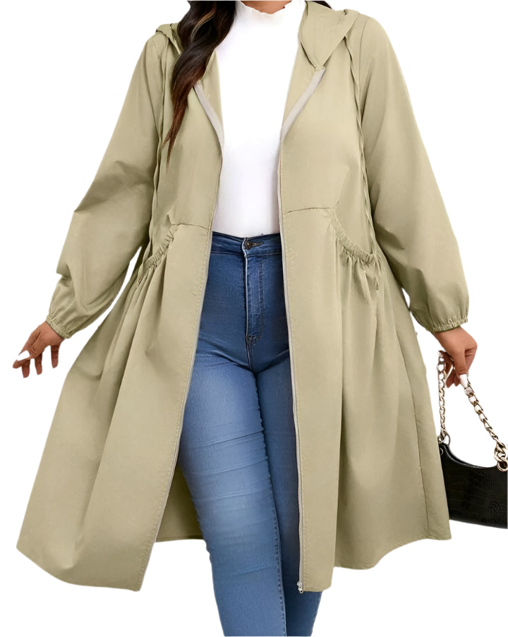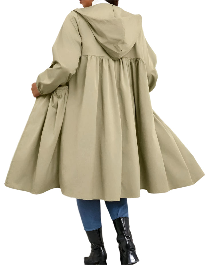 Címke nélküli, könnyed és divatos kapucnis kabát, amely tökéletes választás a tavaszi és őszi szezonra. Laza szabásának és rugalmas derékrészének köszönhetően kényelmes viseletet biztosít, miközben elegáns megjelenést kölcsönöz. Praktikus zsebekkel ellátva, amelyek ideálisak a mindennapi használatra.